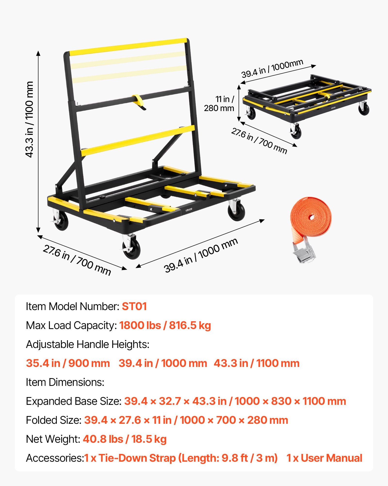- Utökad basstorlek: 39,4 x 32,7 x 43,3 tum / 1000 x 830 x 1100 mm