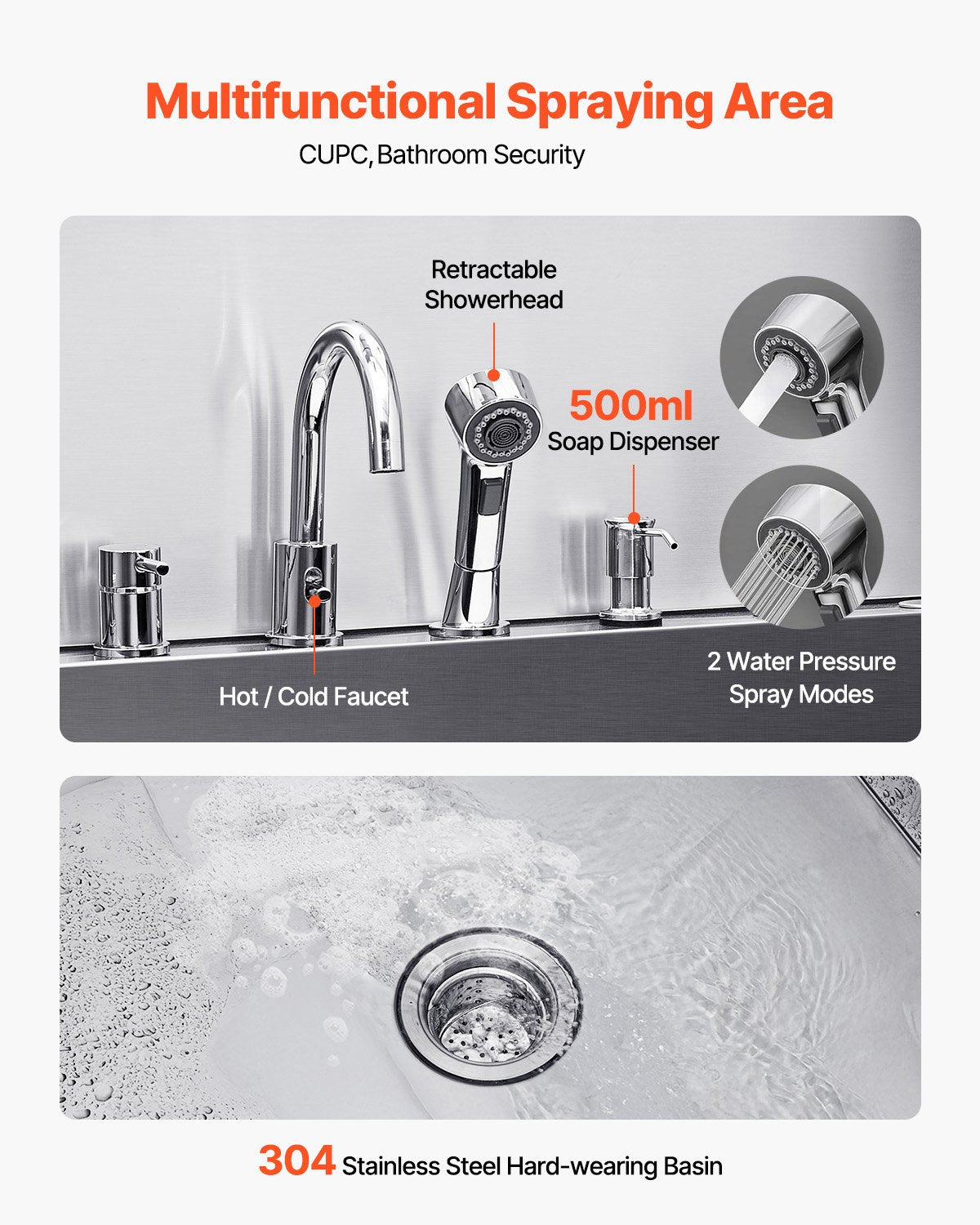 - Bekvämare pälsvård: Hundpälsens kran är certifierad enligt CUPC och NSF för badrumssäkerhet, de varma och kalla kranarna med dubbel kontroll och det milda/starka dubbla vattentrycksduschmunstycket ger mångsidighet. Tvålpump med stor kapacitet på 500 ml säkerställer långvarig användning vid varje påfyllning. Badkarets kropp i 304 rostfritt stål är reptålig och korrosionsbeständig.