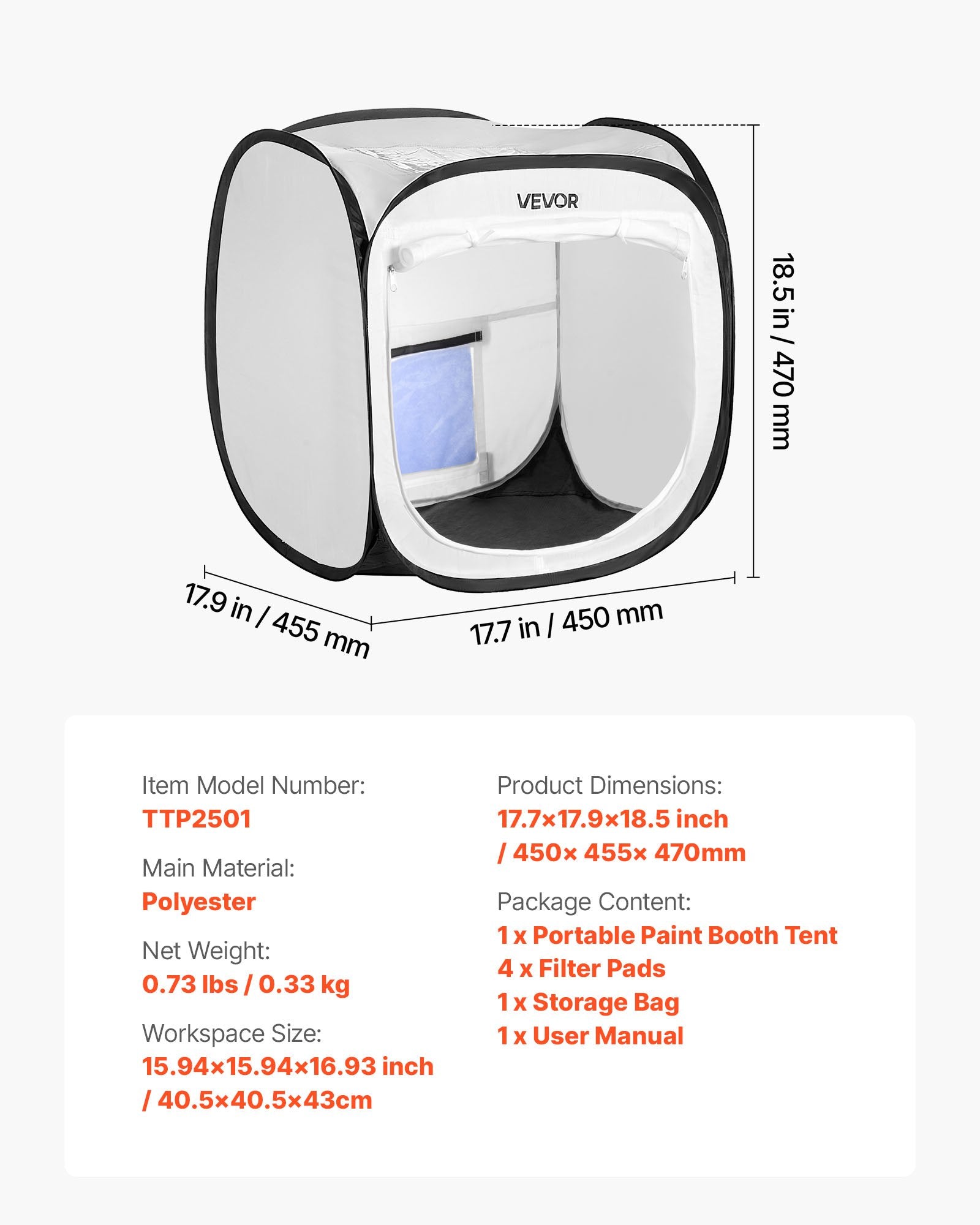 - Lätt och portabelt: VEVOR popup-målningstält är tillverkat av lätt polyester och levereras med vikningsinstruktioner. Det kan snabbt packas i den medföljande förvaringspåsen, vilket gör det enkelt och bekvämt att bära och förvara.