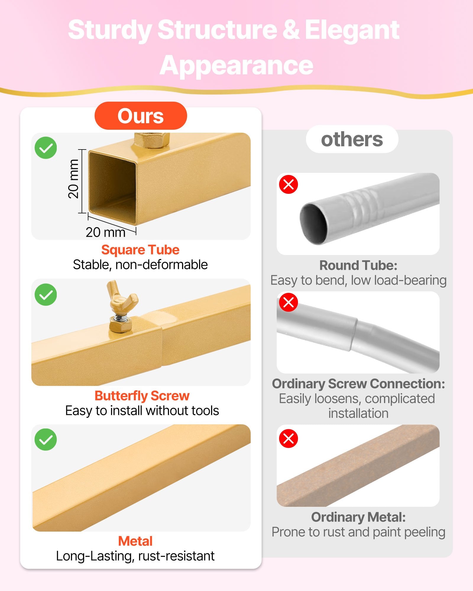 - Sturdy Construction: Our metal arch stand is non-fading, corrosion- and rust-resistant. Upgraded 0.79 x 0.79 in square tubes are bend-resistant and feature a sleeve connection for added stability. It is reusable for indoor and outdoor