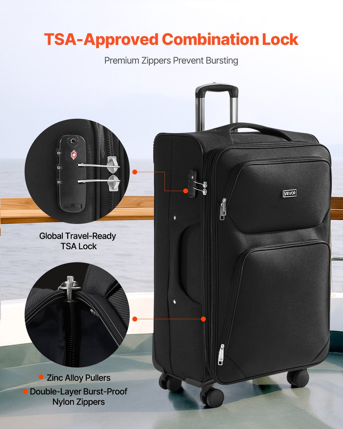 - Säker och pålitlig: Utrustad med ett TSA-godkänt kombinationslås gör detta mjuka bagage det enkelt att öppna flygplatspersonalen med en nyckel för inspektion, vilket förhindrar inbrott. Den släta dragkedjan är lätt att dra upp, förstärkt med flertrådssömmar för stark sammankoppling och hållbarhet, vilket gör den motståndskraftig mot dragkedjans brott.