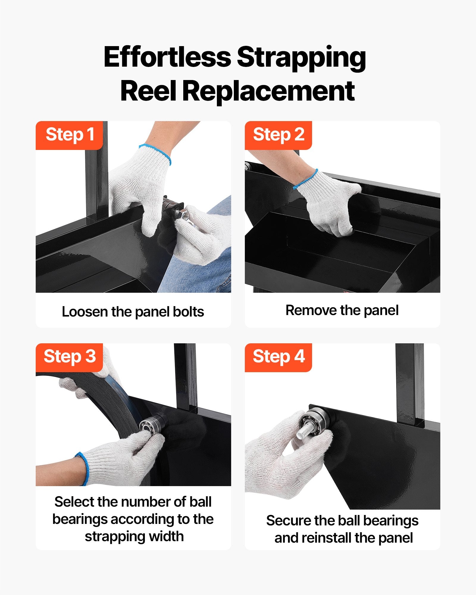 - Smidig bandutmatning: Denna stålbandsutmatare är utrustad med metallkullager och gör hanteringen av tunga stålband enkel. Den minskar trassel och vridning och låter dig justera för olika bandbredder.