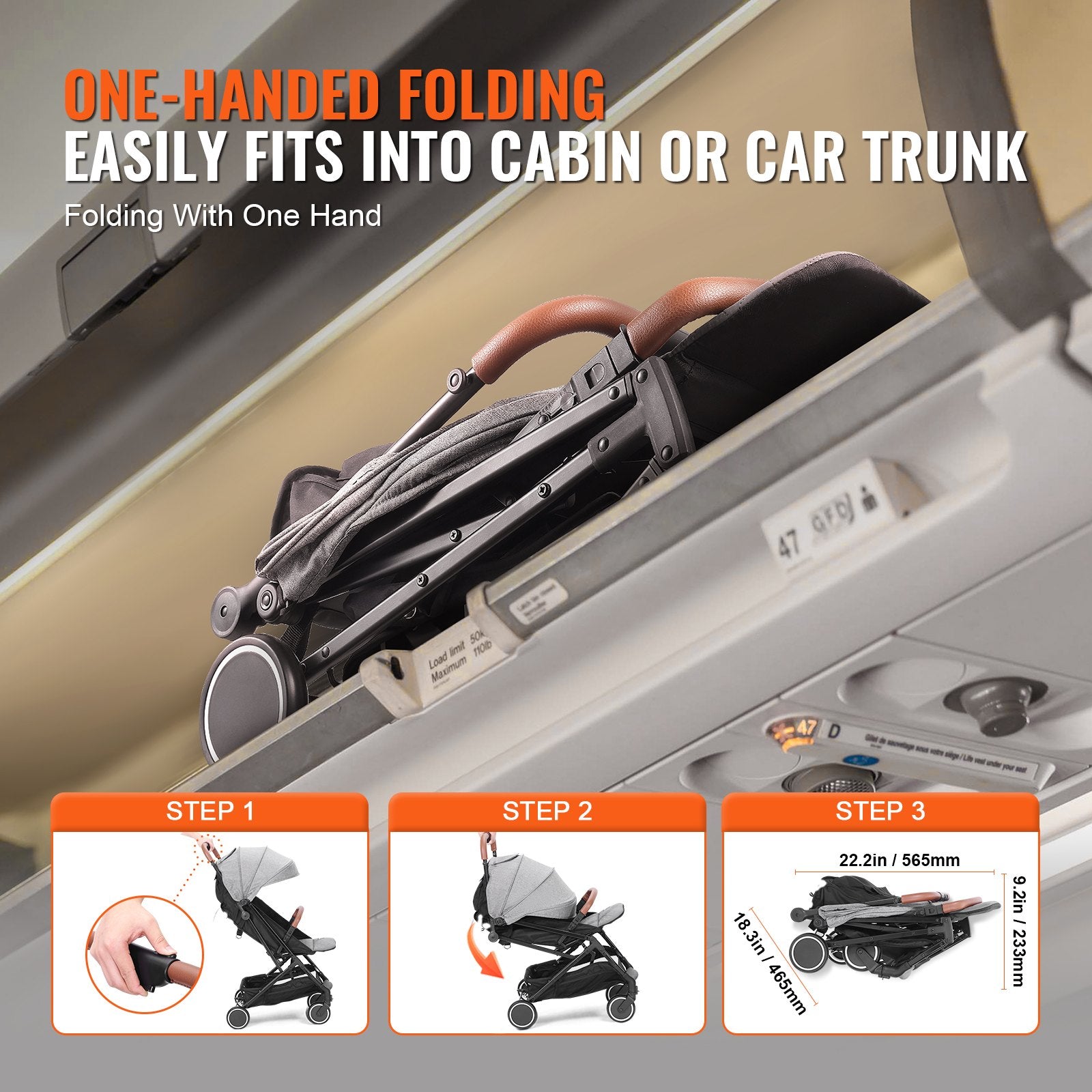 - Hopfällning med en hand: Hopfällning och förvaring kan göras med bara ett drag, med måtten 18,3 x 22,2 x 9,2 tum / 465 x 565 x 233 mm, lämplig för förvaring och användning i Disneyland, flygplansbagageutrymmen och bilbagageutrymmen.