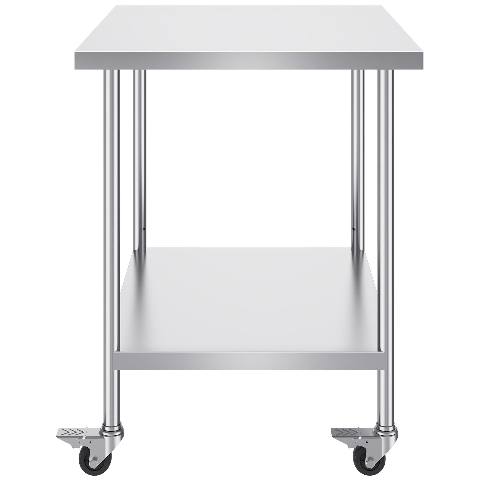 Arbetsbord i rostfritt stål 30 x 36 x 38 tum, med 4 hjul, 3 justerbara höjdnivåer, kraftigt arbetsbord för matlagning för storkök, restaurang, silver