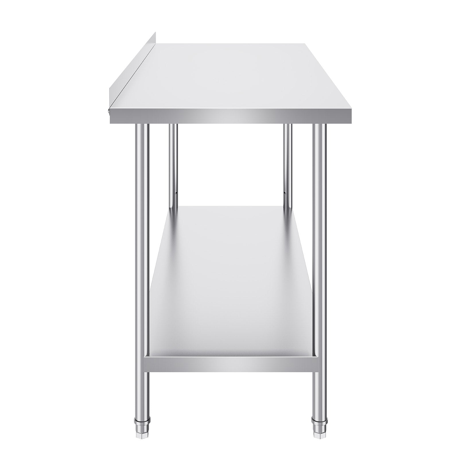 - Högkvalitativt rostfritt stål: Detta arbetsbord, som mäter 61 x 152 x 91 cm, är tillverkat av SUS201 rostfritt stål för bordsskiva, hyllor och ben. Det erbjuder överlägsen rostbeständighet, ett elegant utseende och en slät yta som är lätt att rengöra med en enkel torkning. NSF-certifierat, uppfyller det strikta folkhälsostandarder, vilket garanterar ett långvarigt skydd för din hälsa.