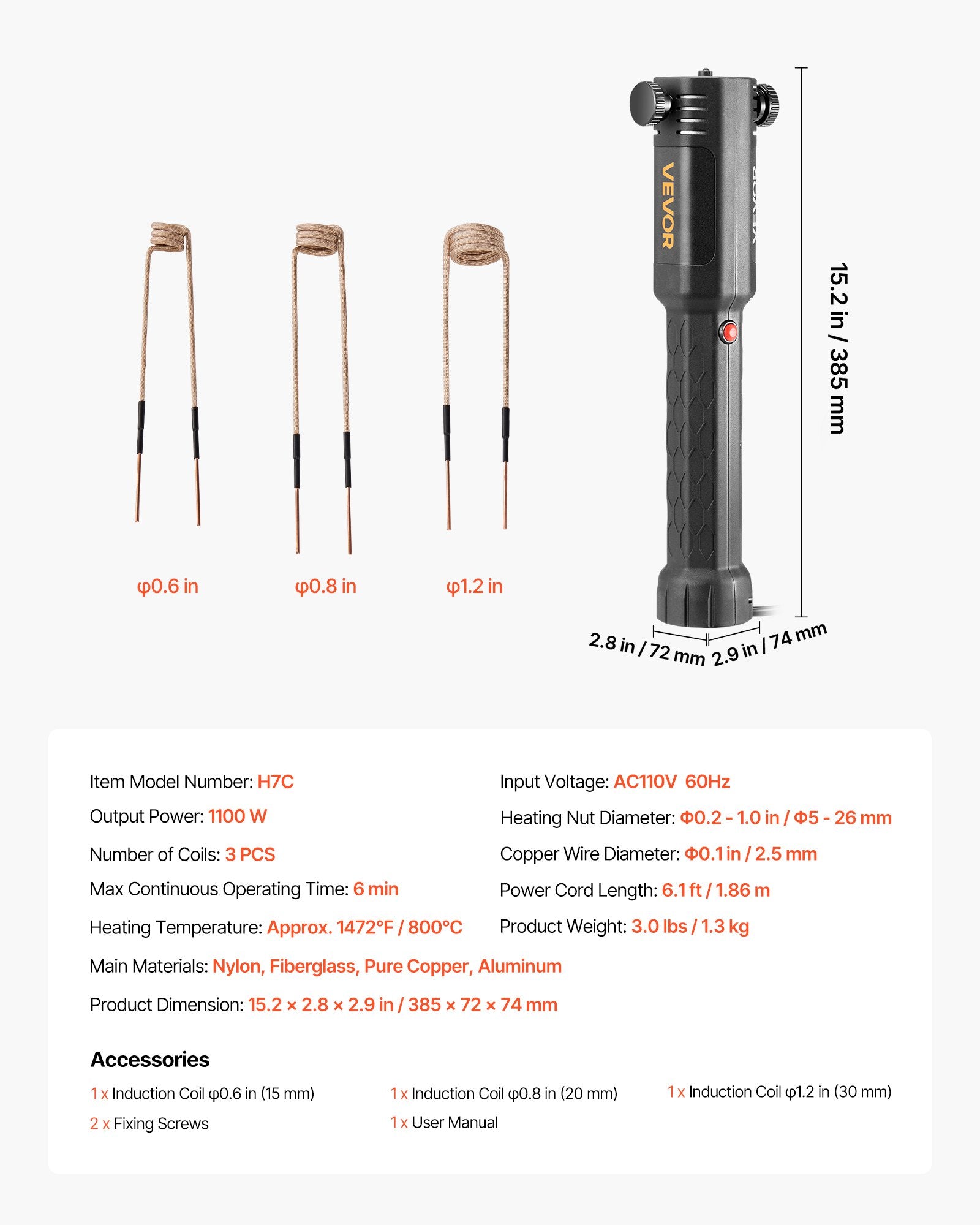 - Complete Kit: The magnetic induction heater kit offers 3 specifications of heating coils. Suitable for workpieces of 0.2-1 in (5-26 mm), easily handling delicate metal heating challenges