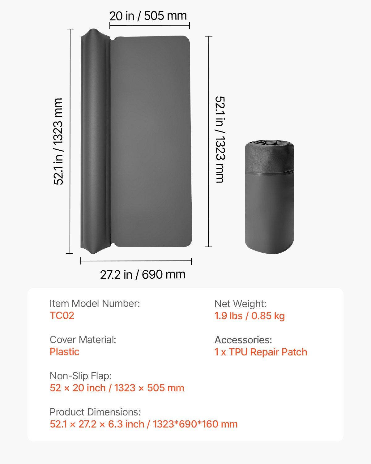 - Non-Slip Flap: 52 x 20 inch / 1323 x 505 mm