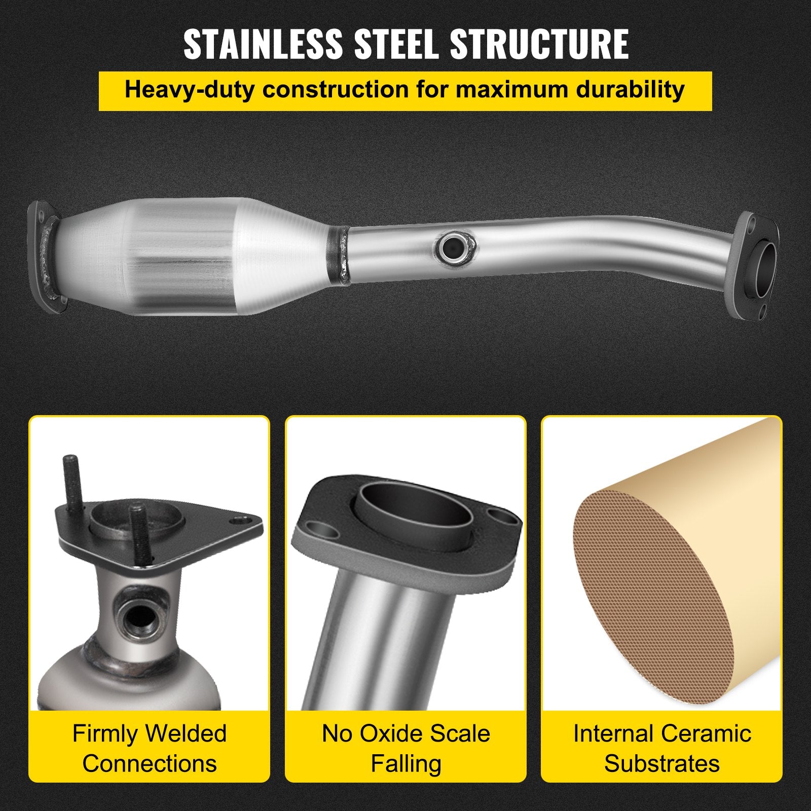 - Stainless Steel Structure: The high flow catalytic converters are assembled with stainless steel bodies for long-term use, capable of enduring high-temper gases from the exhaust. Their internal ceramic substrates contain high-load precious metal catalysts, including Pt, Rh, and Pd, to enhance purification efficiency and intensity.