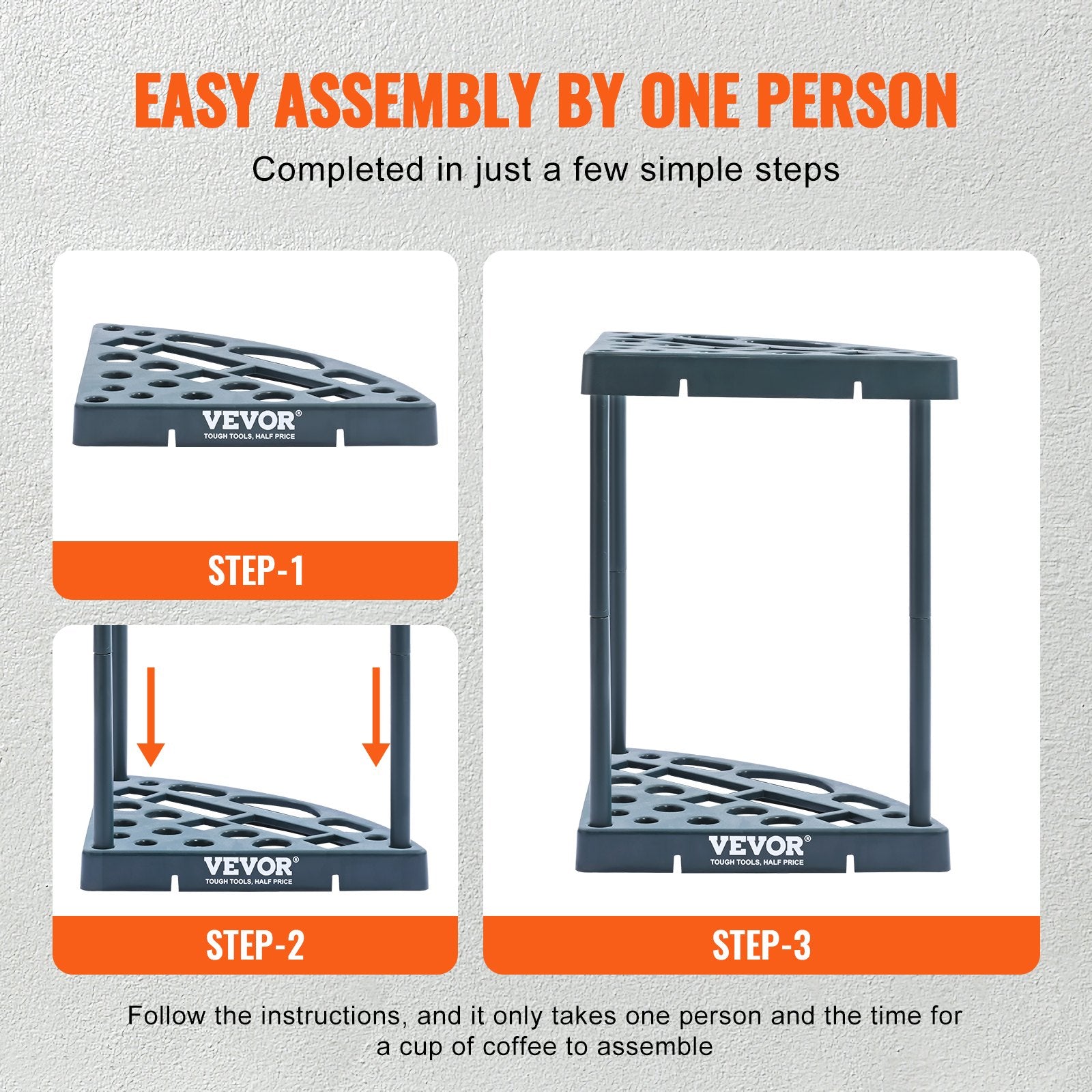 - Enkel installation: De specialdesignade komponenterna på trädgårdsredskapshållaren gör monteringen till en barnlek – inga specialverktyg behövs. Du kommer att ha den igång på nolltid, vilket sparar dig värdefulla minuter. Obs: Den måste fästas på väggen med expansionsskruvar före användning.