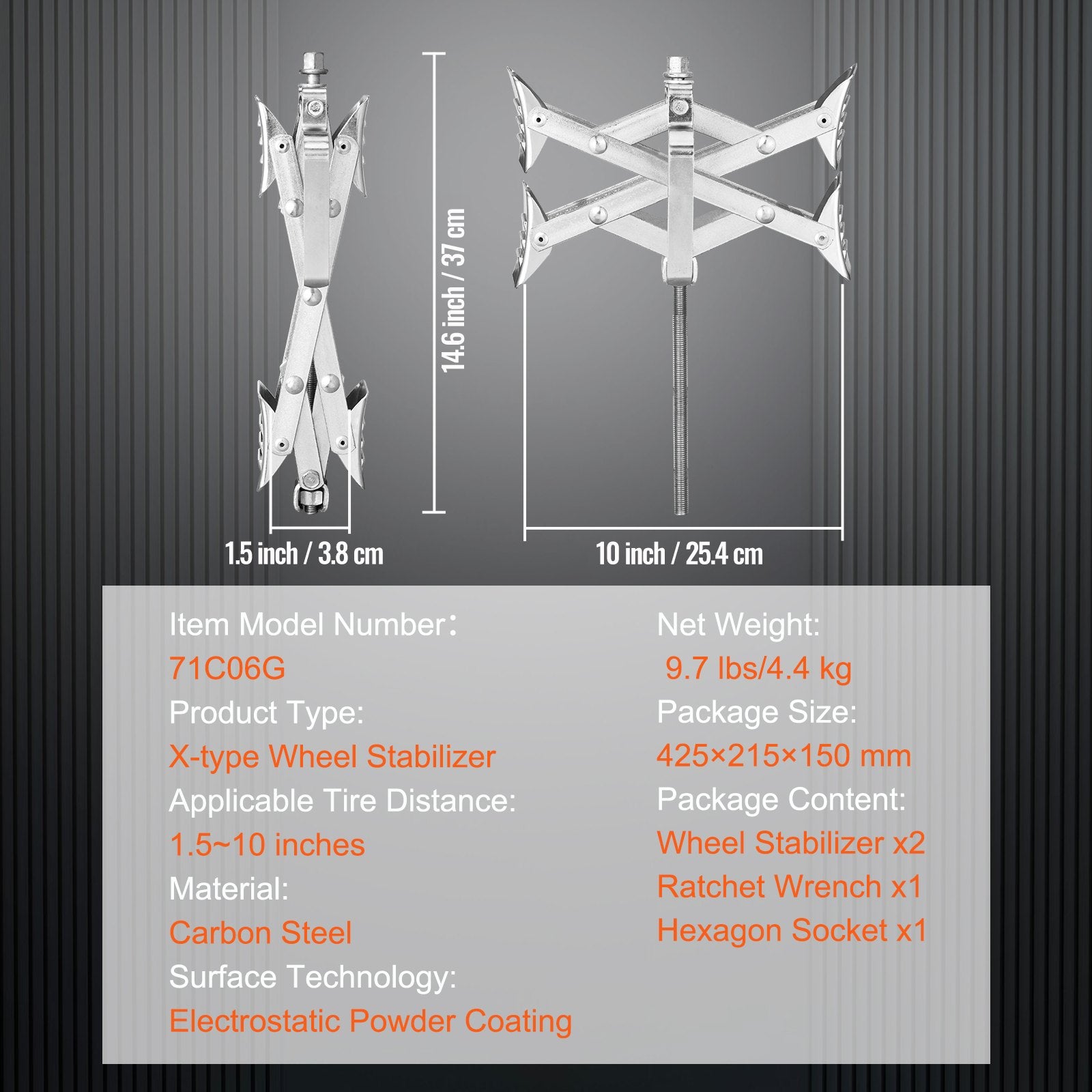 Hjulkloss för husbilar, X-formad hjulkloss för husbilar, passar för däckutrymme på 1,5" till 10", 2 uppsättningar hjulklossar med spärrnyckel och förvaringsväska för husbilar, husvagnar, lastbilar
