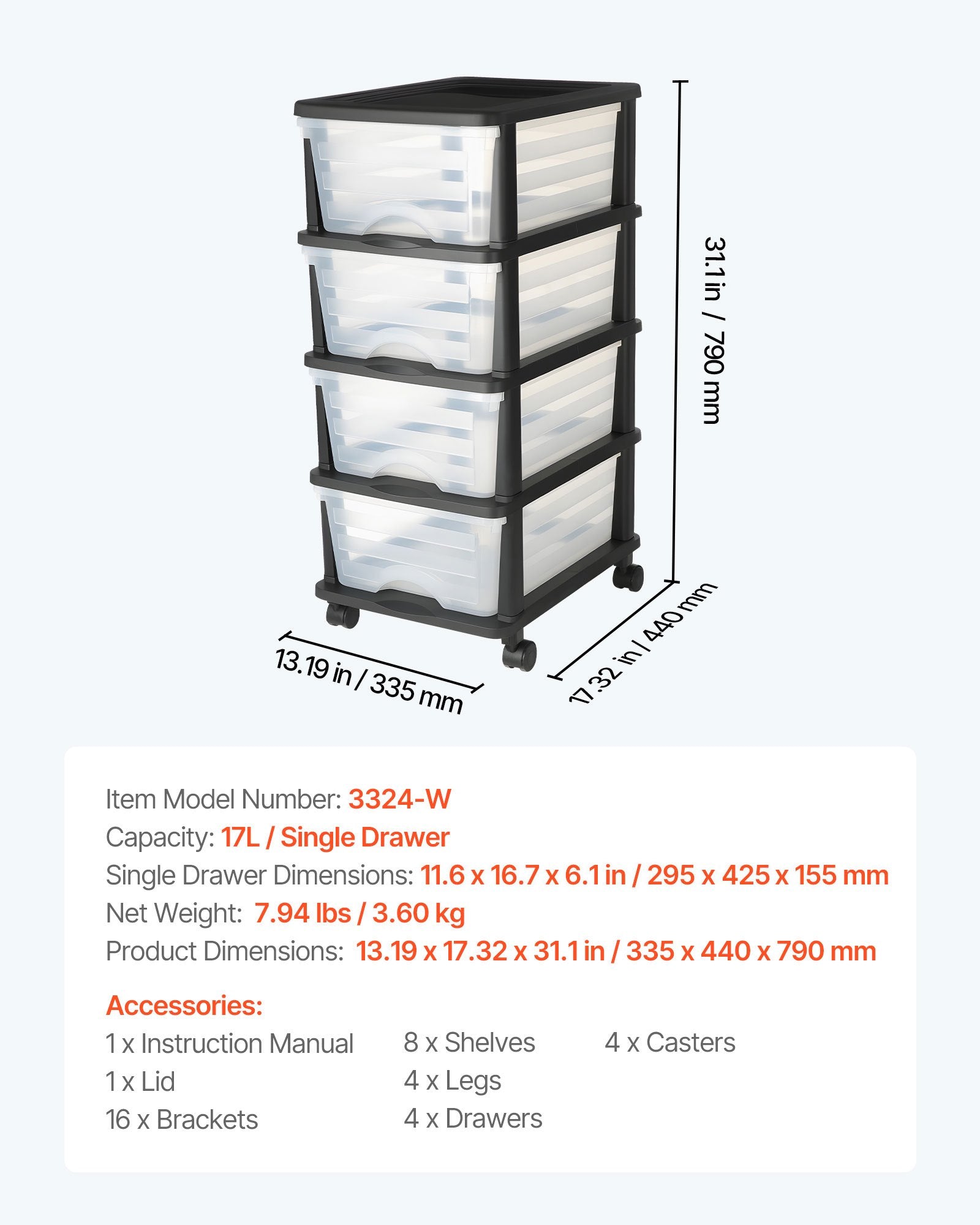 - Produktmått: 335 x 440 x 790 mm