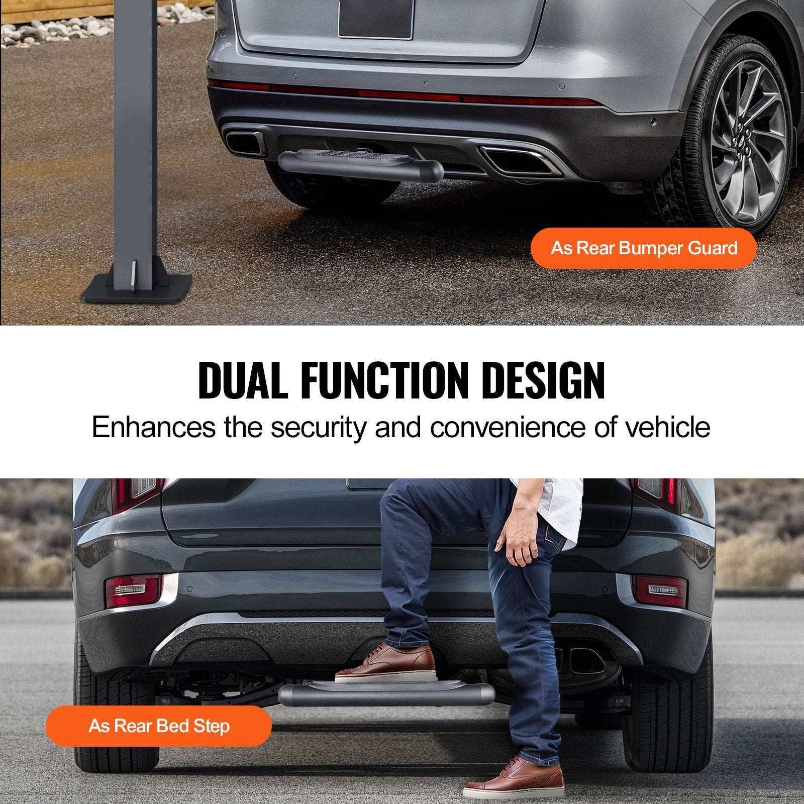 - Säkerhet och praktisk användning: Detta dragkroksteg är både en robust säkerhetsfunktion och ett praktiskt verktyg för lastning och lossning. Det ger maximalt skydd för ditt fordons bakdel och motstår påkörningar bakifrån, repor och stötar. Det absorberar det mesta av stötarna för att buffra ditt fordon, vilket minskar risken för allvarligare skador på dig och dina passagerare. Dess genomtänkta design erbjuder en stabil stegpunkt och det hjälper till vid lastning och lossning av tunga föremål, vilket förbättrar din helhetsupplevelse.