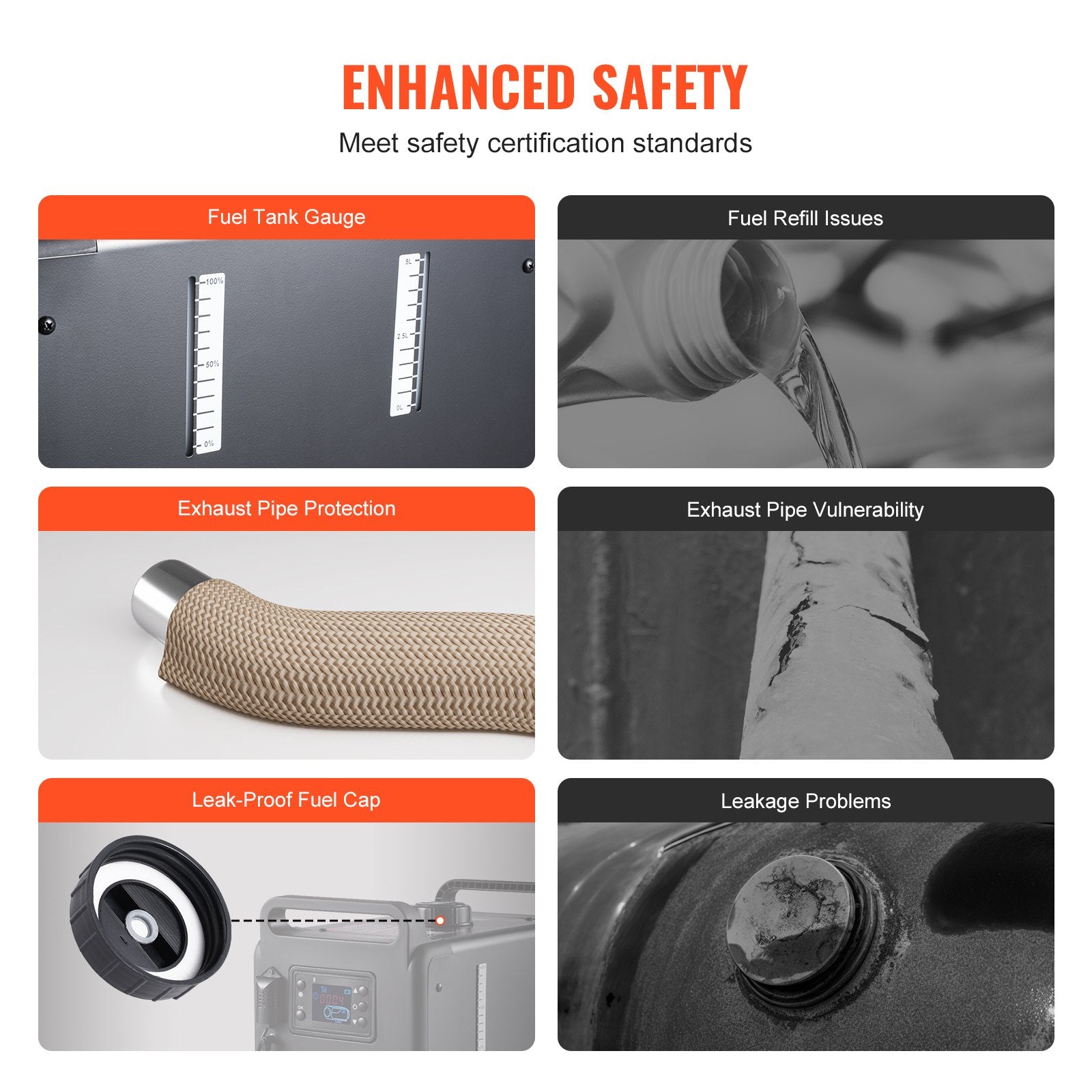 - Innovativt CO-larmsystem: Vår dieselvärmare har förbättrad säkerhet med ett inbyggt CO-larm som kontinuerligt övervakar CO-nivåerna och ger varningar eller automatisk avstängning vid behov. Ytterligare uppgraderingar inkluderar ett läckagesäkert bränsletanklock, bränslenivåindikator och överhettningsskydd – vilket garanterar sinnesro vid längre tids användning.