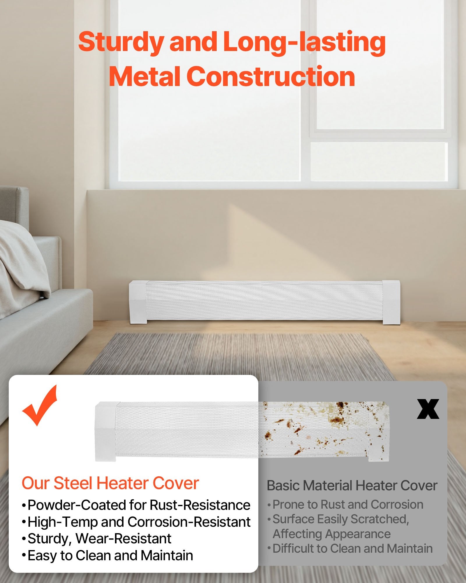 Värmekåpor till golvlister, Premium-serien 1222 mm standardfrontkåpa för elektrisk värmeenhet för hemförbättring, kraftigt stål, enkel installation för sovrum, byter ut gammalt kåpa, vit