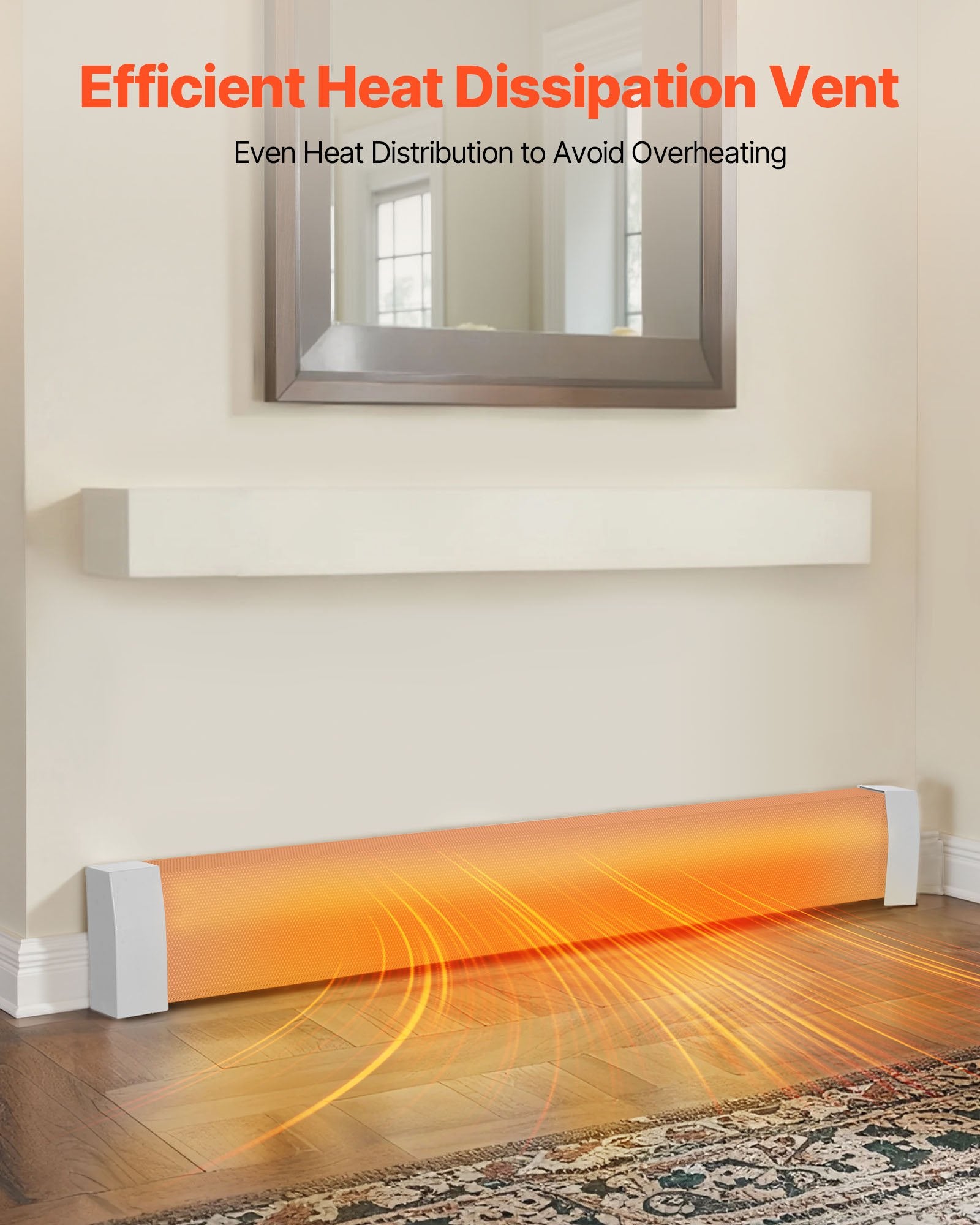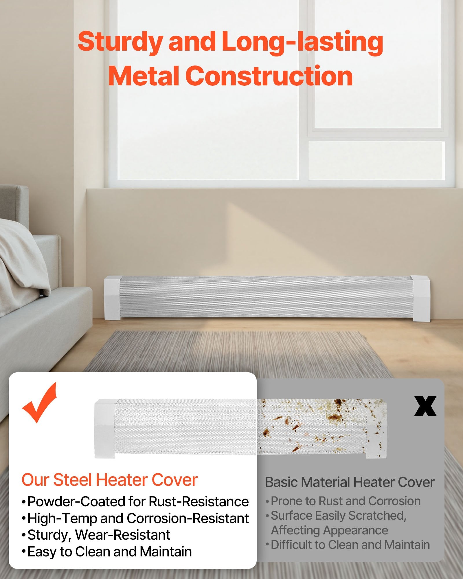 Värmekåpor till golvlister, Premium-serien 1527 mm standardfrontkåpa för elektrisk värmeenhet för hemförbättring, kraftigt stål, enkel installation för sovrum, byter ut gammalt kåpa, vit