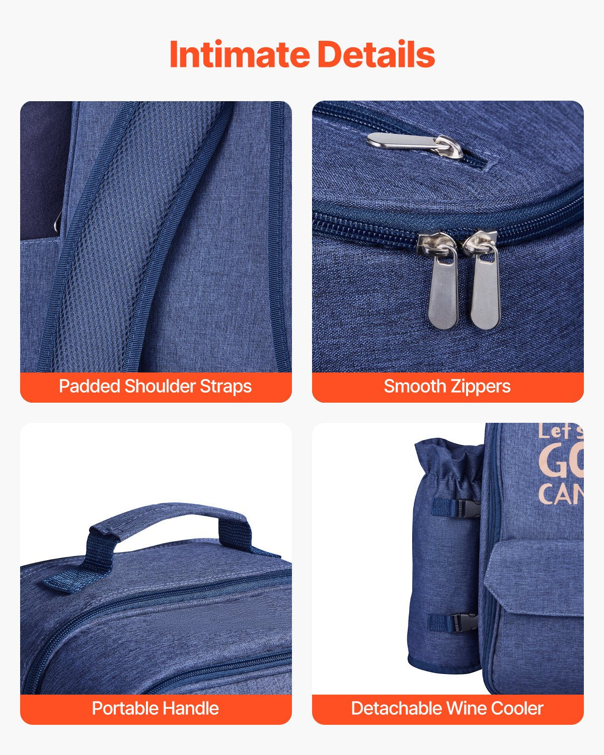 - Intima detaljer: Denna picknickryggsäck har vadderade axelremmar för bekväm bärkomfort, släta dragkedjor för enkel åtkomst och ett bärbart handtag för mångsidig användning.
