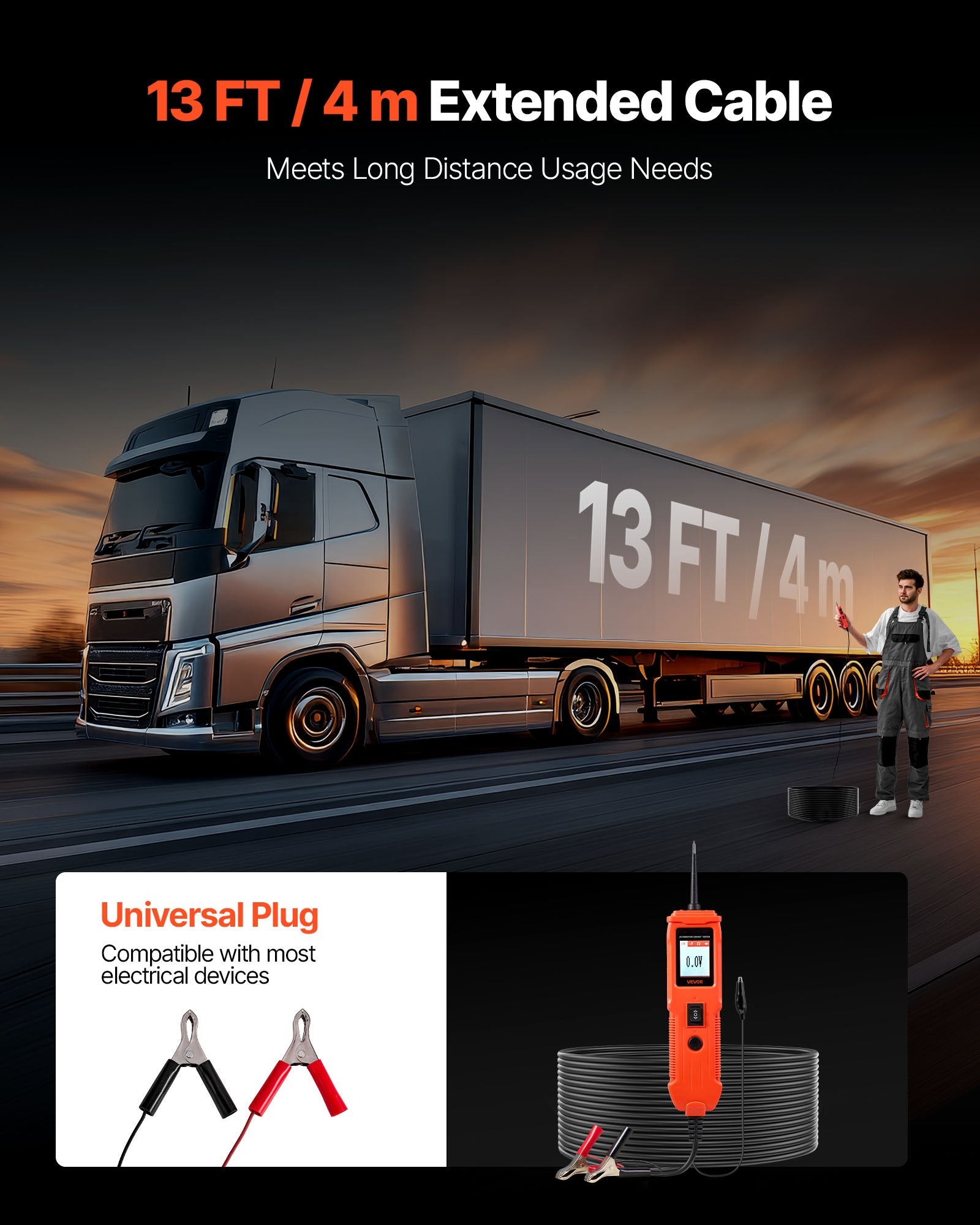 Automotive Circuit Tester, 8 - 35 DCV Power Circuit Probe Tester with TFT Color Display and Lighting, Automotive Power Tester Probe with 13 ft / 4 m Cable, ABS Shell Electrical Detector Finder