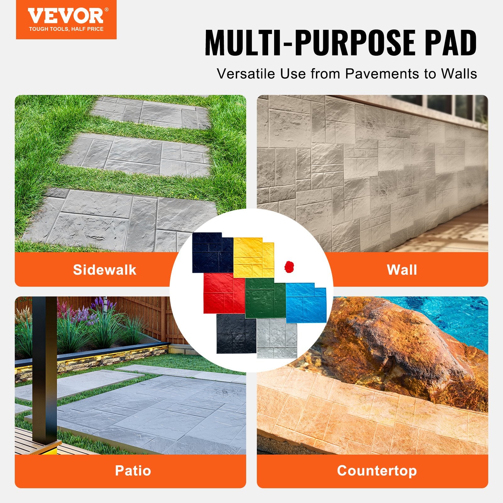 Betongstämpelsmatta, 24 x 24 tum, 7 st. Betongtextureringsskinn Polyuretanstämpel Stenplattetexturmatta, Skiffergolv Avtryck Sömlös Stämpel Betongformar för Utomhusdekoration, Flerfärgad