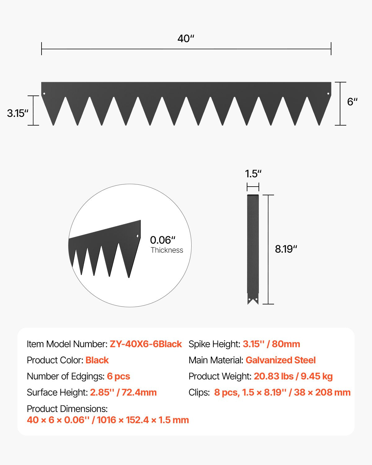 - Vad du får: Setet innehåller 6 metallkantlister, 1 par installationshandskar, 8 klämmor och 1 bruksanvisning. Den förlängda spikdesignen gör det enklare att slå ner delarna i marken, vilket minskar installationsarbetet. Lägg mer tid på att njuta av ditt utomhusutrymme och mindre tid på underhåll!