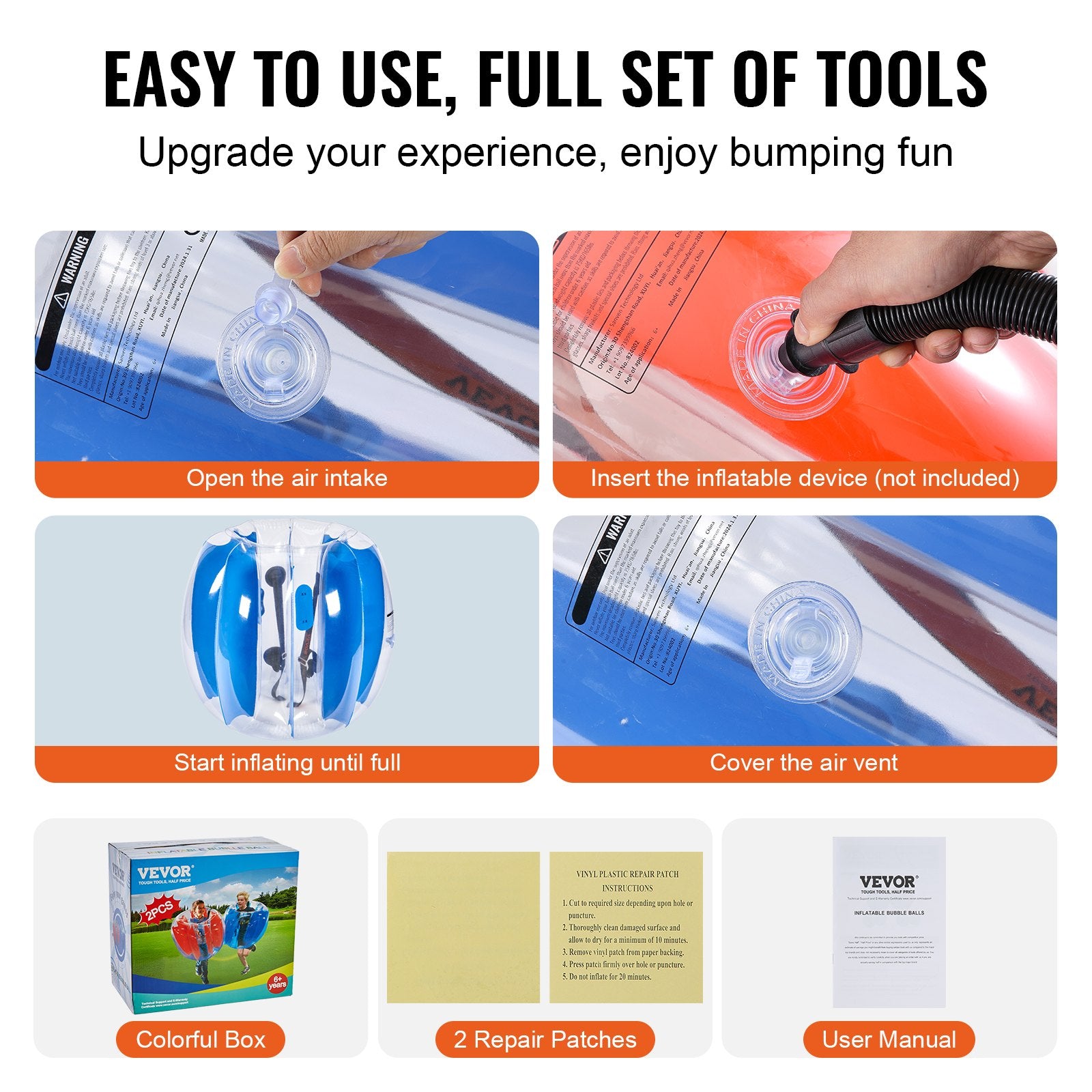 - Flexibelt lekglädje: VEVOR mänskliga hamsterbubbelbollar är lämpliga för solo- eller gruppunderhållning, njut av friheten att studsa, hoppa och stöta med vänner. De är idealiska för trädgårdar, bakgårdar, lekplatser, parker, rekreationscenter, njut av stötkul när som helst och var som helst.