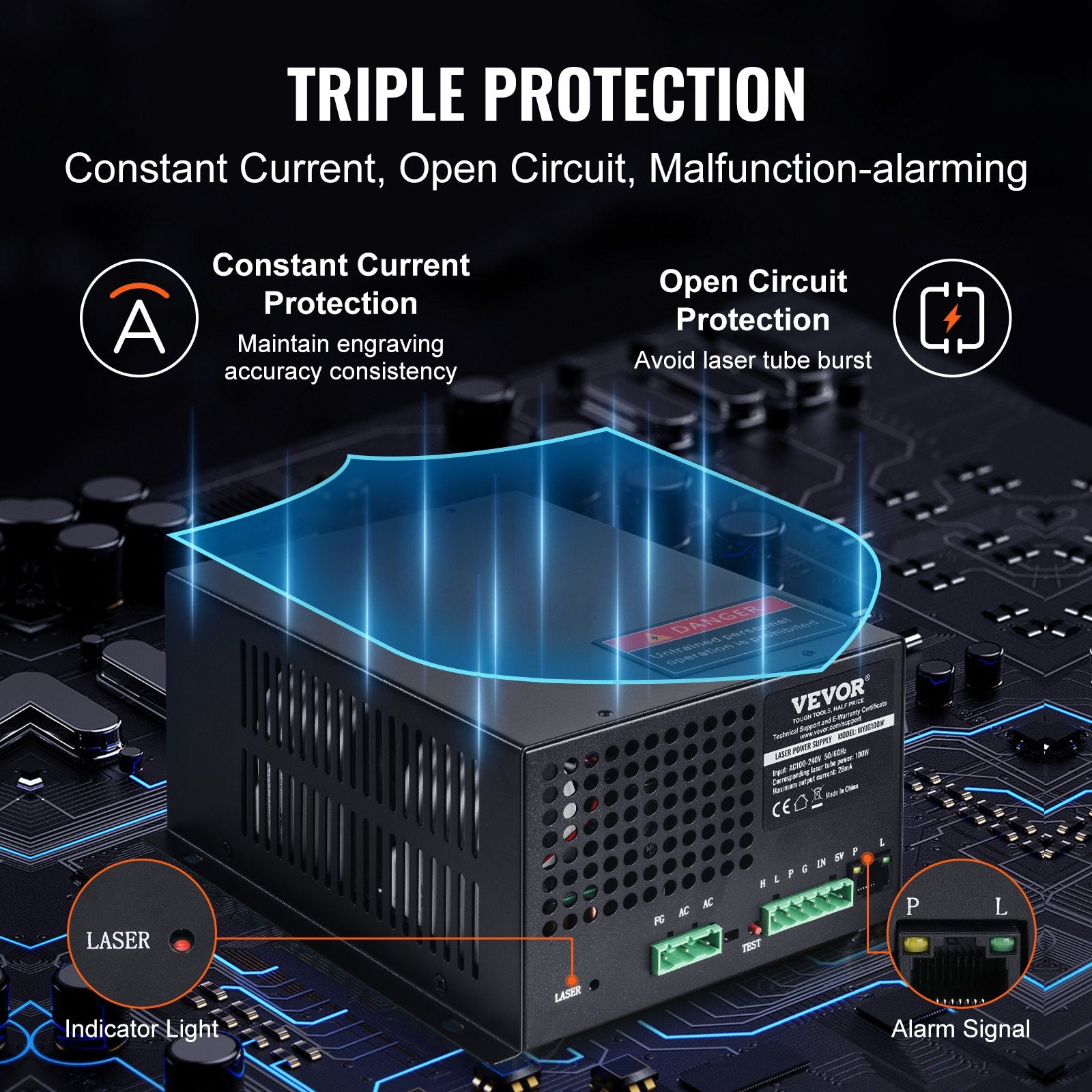 CO2 Laser Power Supply, 100W, Power Supply for 100W Laser Tube, Constant Current Protection, Open Circuit Protection, Fast Heat Dissipation, Compatible for Multi-brand Laser Engravers & Cutters