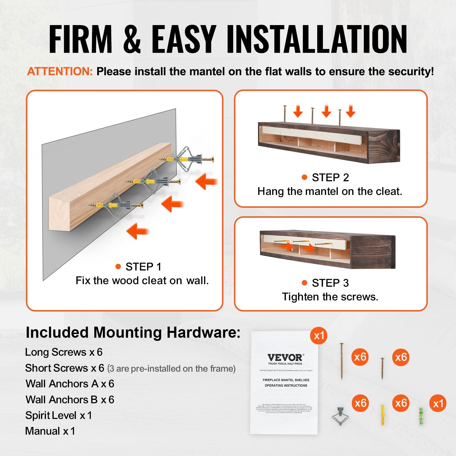 - Enkel att installera: För säker och okomplicerad installation, se till att trämanteln monteras på plana väggar. All nödvändig monteringsutrustning ingår, vilket gör monteringsprocessen snabb och problemfri.