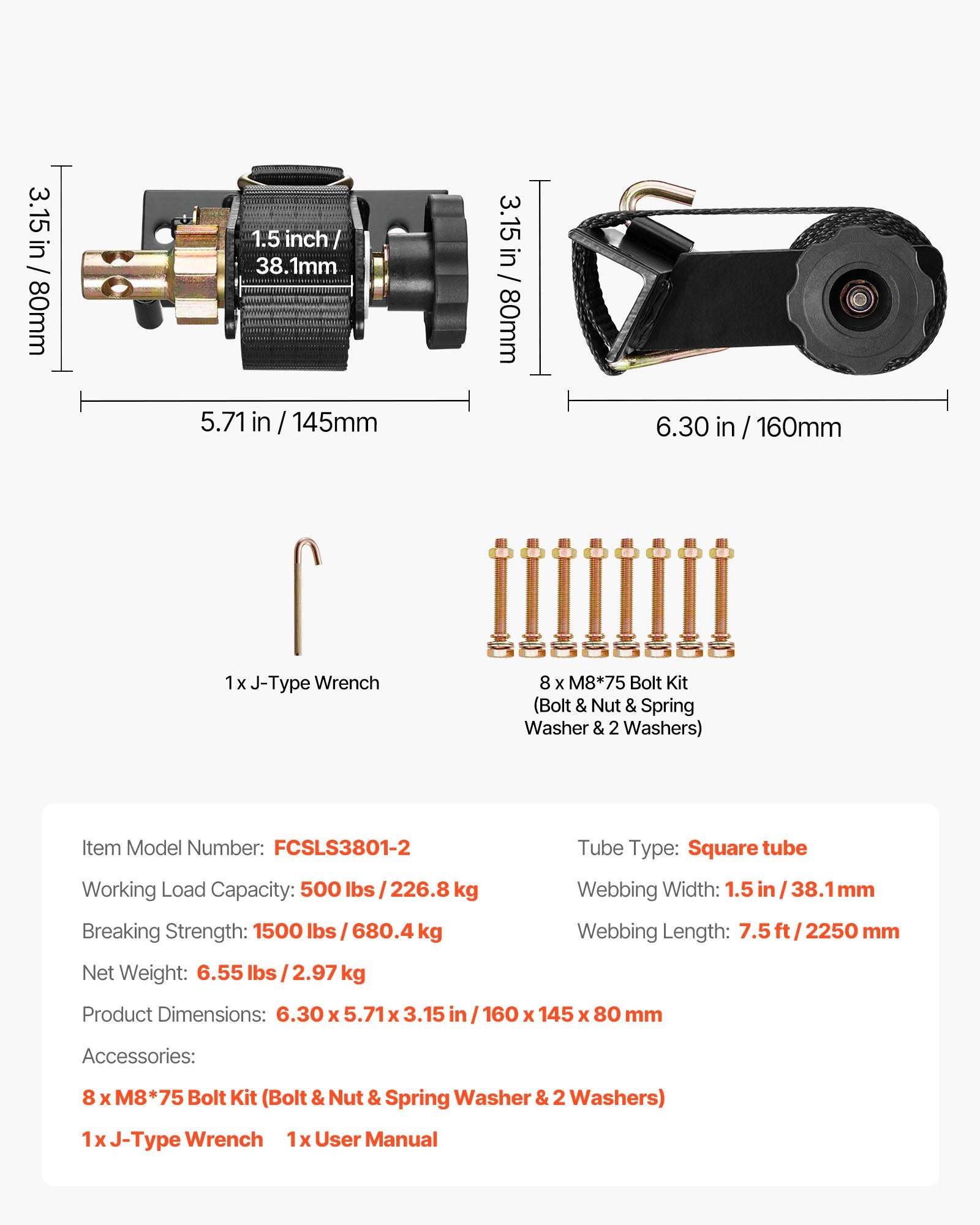 - Stable, Road-Ready Build: Each 7.4 ft webbing pairs with zinc-plated carbon-steel hooks for strength and corrosion resistance. The tight hold helps resist loosening on long or bumpy drives