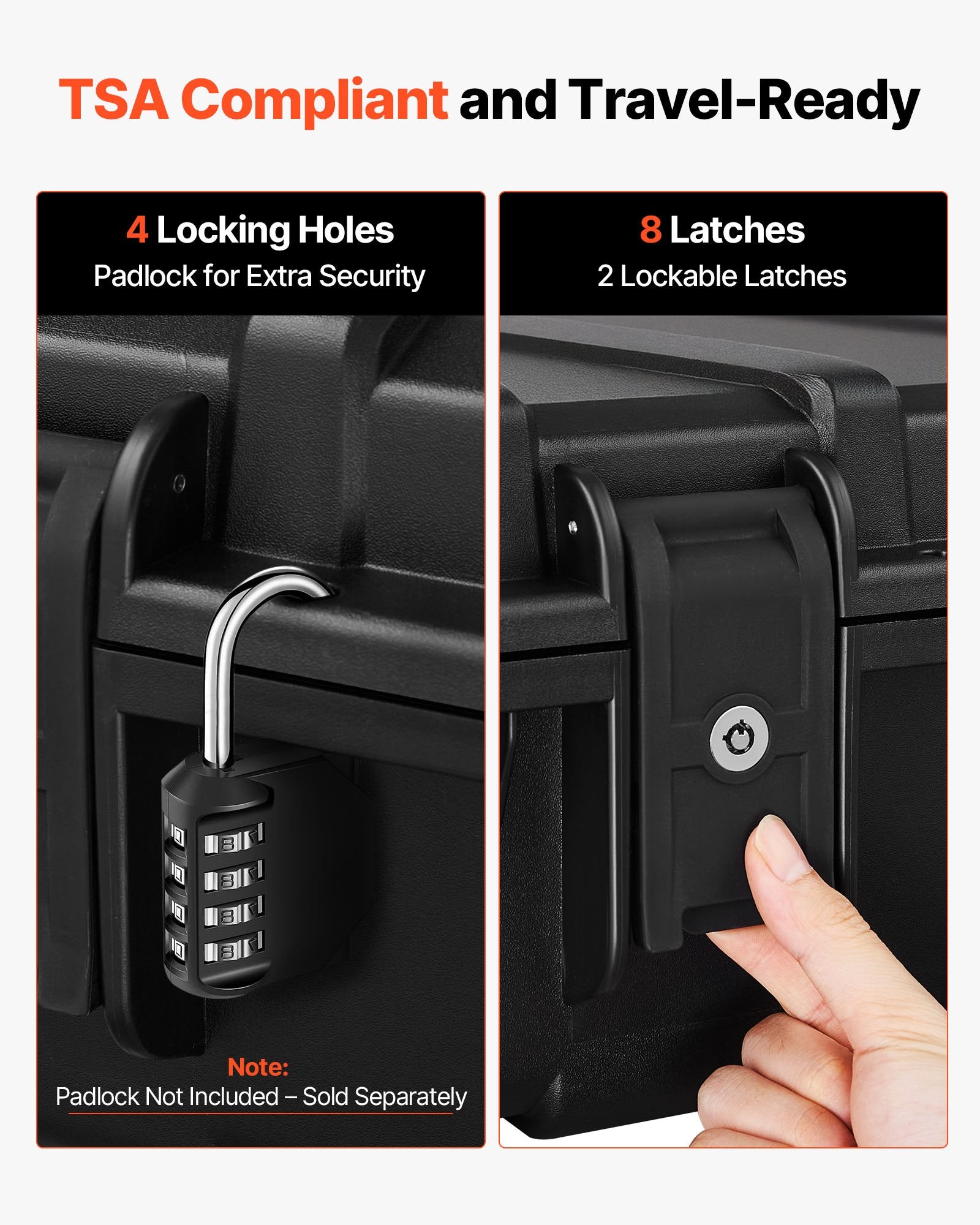 - TSA Compliant: Meet TSA standards, this rifle case is suitable for travel on airplanes, trains, and other transport. Equipped with multiple latches, you can also add padlocks to the built-in lock holes for extra security (Note: padlocks not included)
