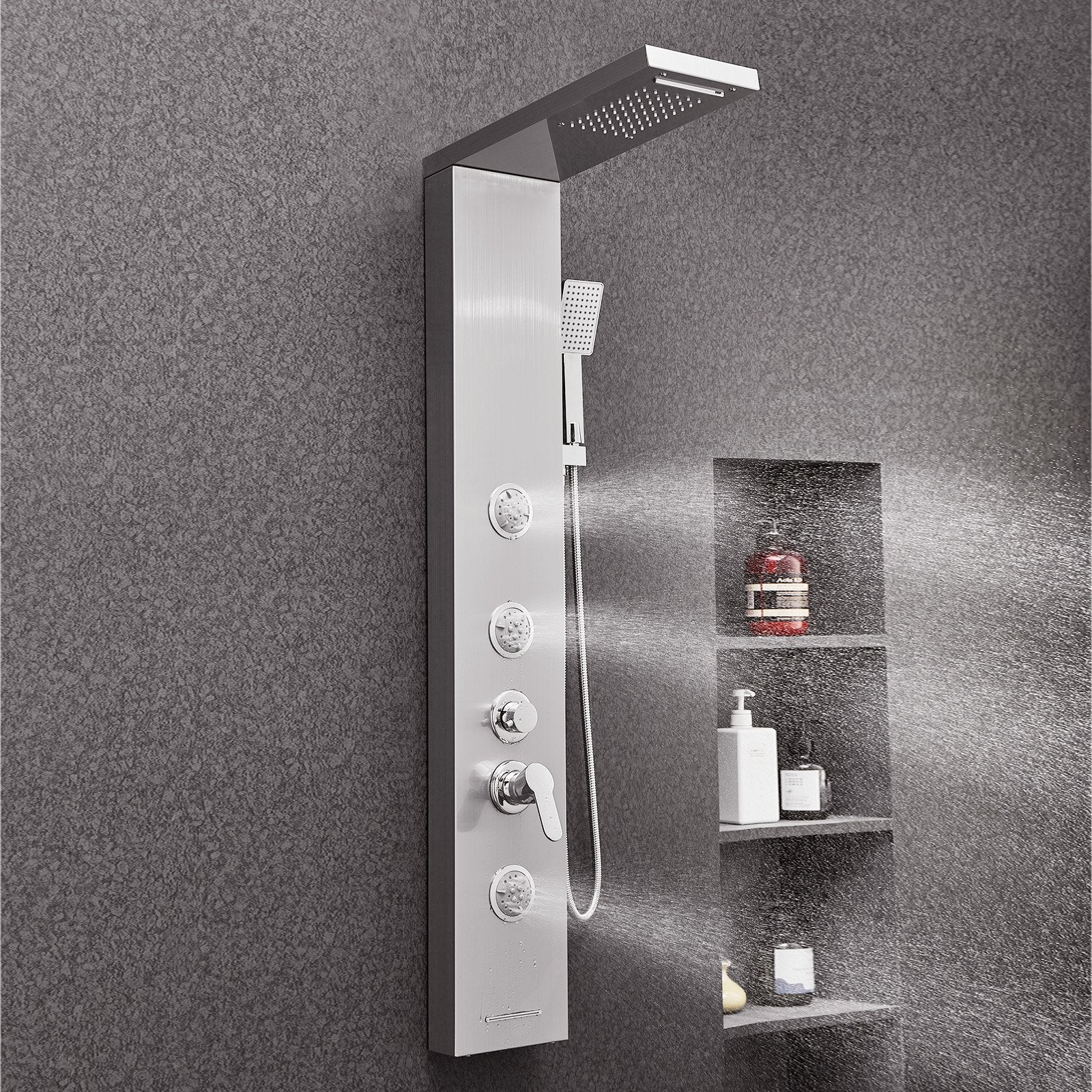 - Robust duschpanel i rostfritt stål: Detta hållbara högtryckssystem för regnmassage är tillverkat av förtjockat rostfritt stål, vilket är korrosionsbeständigt, hållbart och bibehåller ett rent och hygieniskt utseende.