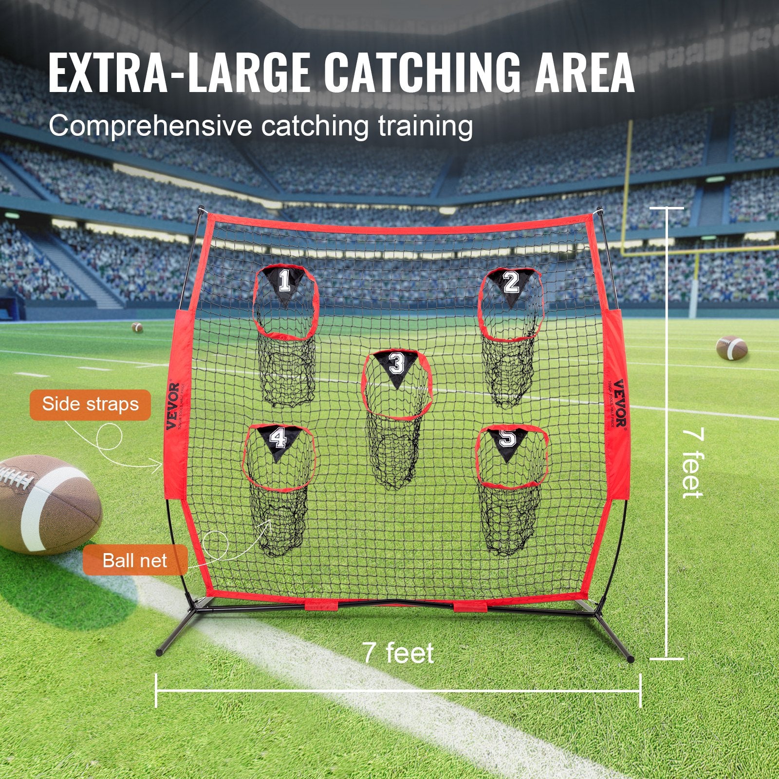 - Robust och hållbart: Vårt kastnät är tillverkat av knutlöst polyesternät, byggt för att hålla. Det tål tuffa väderförhållanden, oavsett om det är blåsigt, regnigt eller stekande varmt. Den förstärkta basanslutningsstrukturen ger dig en hållbar och stabil miljö för passningsträning i fotboll.