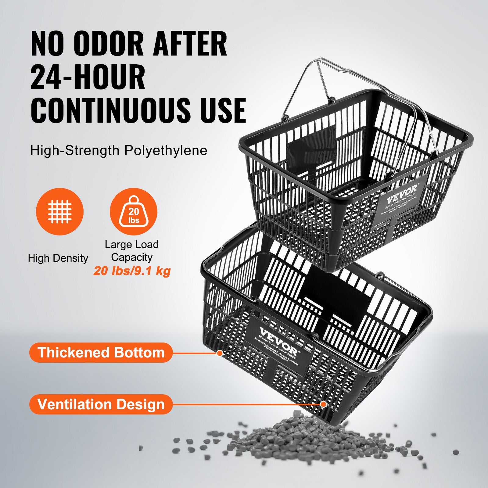 - Designad för dig: Vår handkorg har ergonomiska, breddade handtag för ett bekvämt grepp, vilket gör det enkelt att bära tunga laster. Den dubbelsidiga handtagsdesignen underlättar placering, stapling och stabilitet i korgen, vilket gör den idealisk för hushållsinköp och kortvariga förvaringsbehov i kommersiella miljöer.