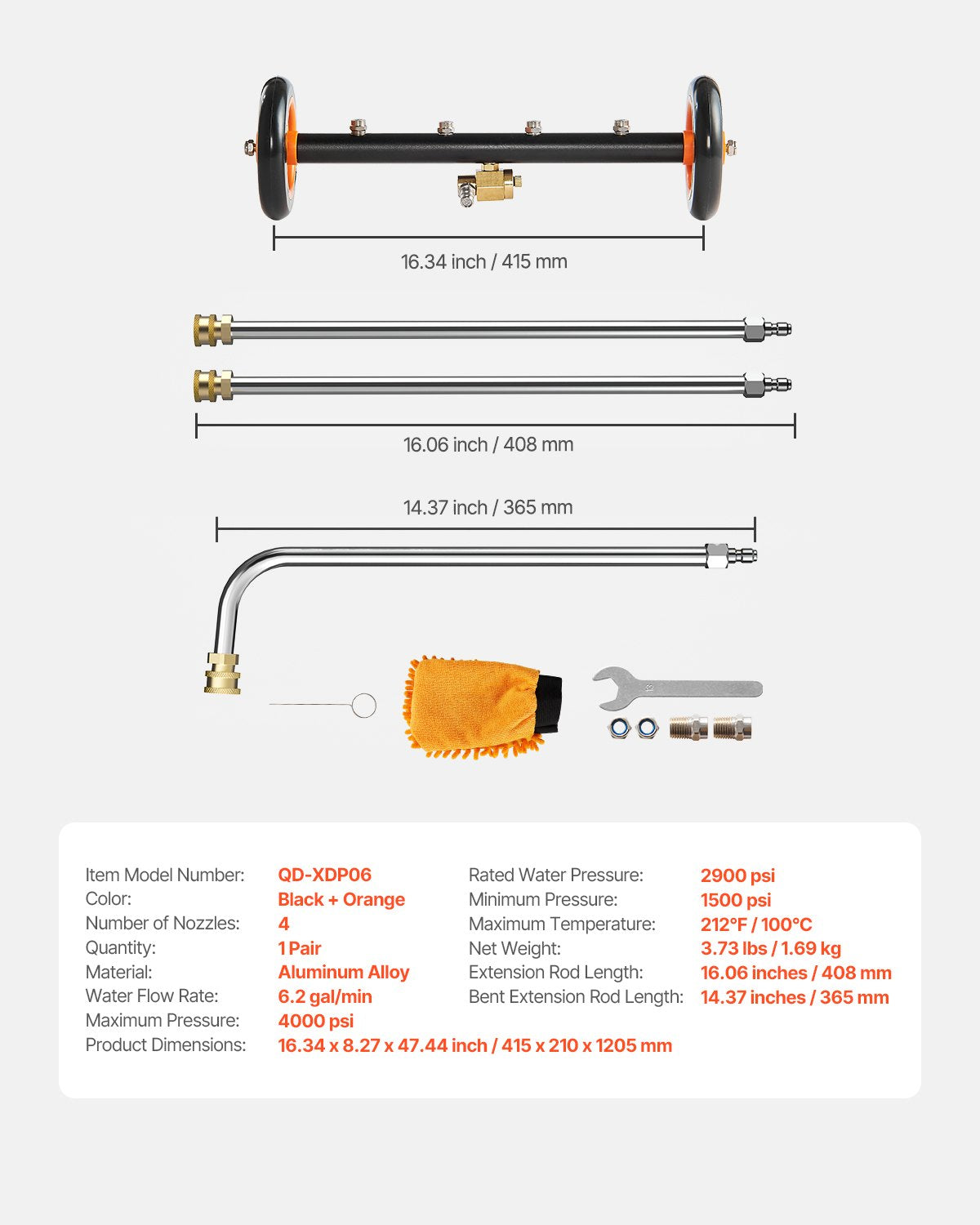 - Rated Water Pressure: 2900 psi