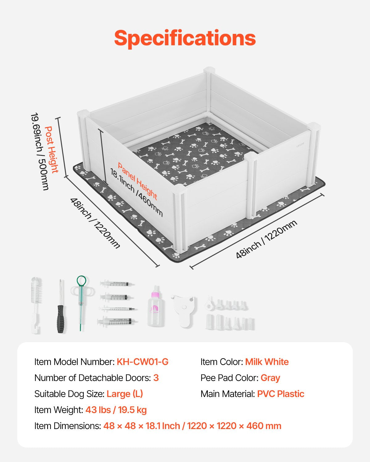 - Valplåda för stora hundar: Med måtten 48x48x18,1 tum / 1220x1220x460 mm erbjuder vår valplåda ett rymligt och bekvämt område för stora hundar, vilket garanterar gott om rörelseutrymme. Vänligen BEKRÄFTA din hunds vikt, längd och vikt innan du köper.