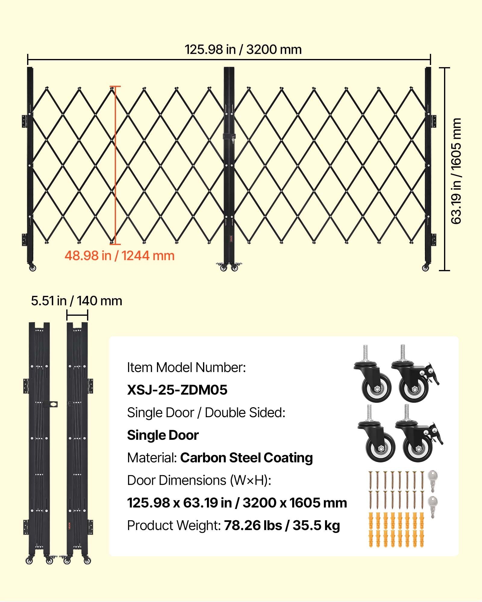 - Flexibla rullande hjul: Vår saxgrind har 360° svängbara hjul med lås i botten för att fixera positioner. Den sidofällbara dörren förblir obehindrad när den är öppen eller helt stängd. Mjuk rullning möjliggör enkel transport och förvaring.