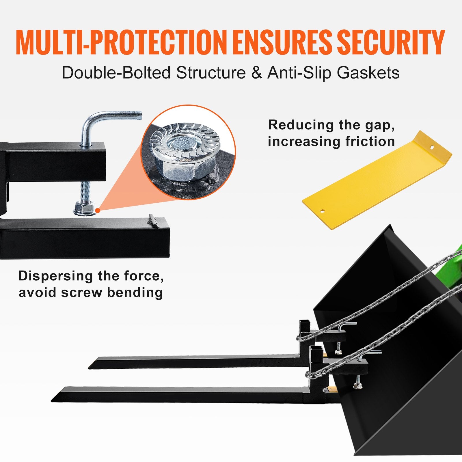 Klämbara pallgafflar, pallgafflar med kapacitet 907,2 kg, 152,4 cm traktorskopgafflar, kraftigt frontlastartillbehör för lastskopa, traktor, kompaktlastare, traktorgafflar för jordbruk och lantbruk