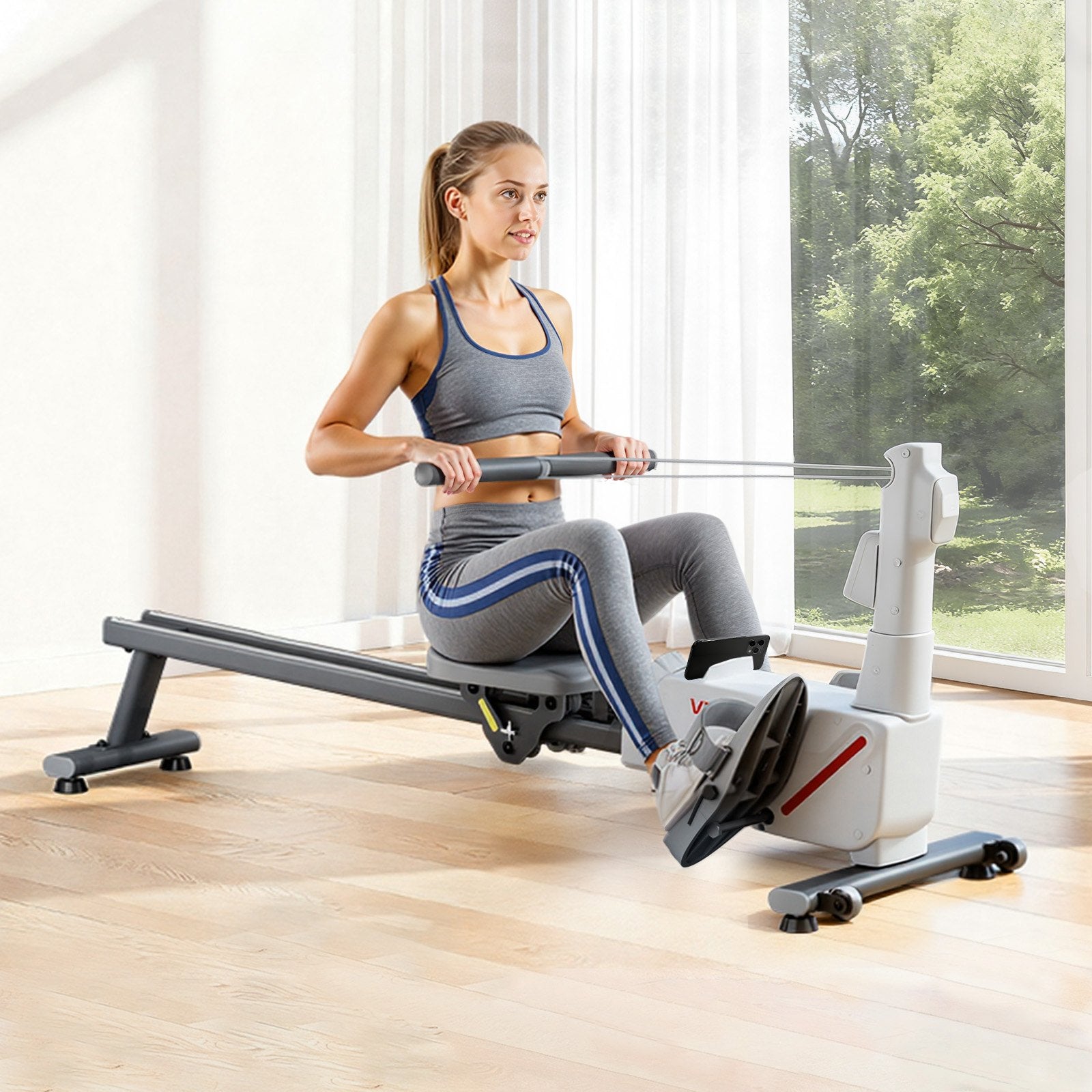 - Genomtänkta detaljer, bekväm rodd: Roddmaskinen för hemmagymmet har en dubbel skena som garanterar smidig och jämn rodd. Ergonomisk sits och handtag för maximal komfort. HD LCD-skärmen visar roddtag, tid, distans och kalorier i realtid för träningsspårning.