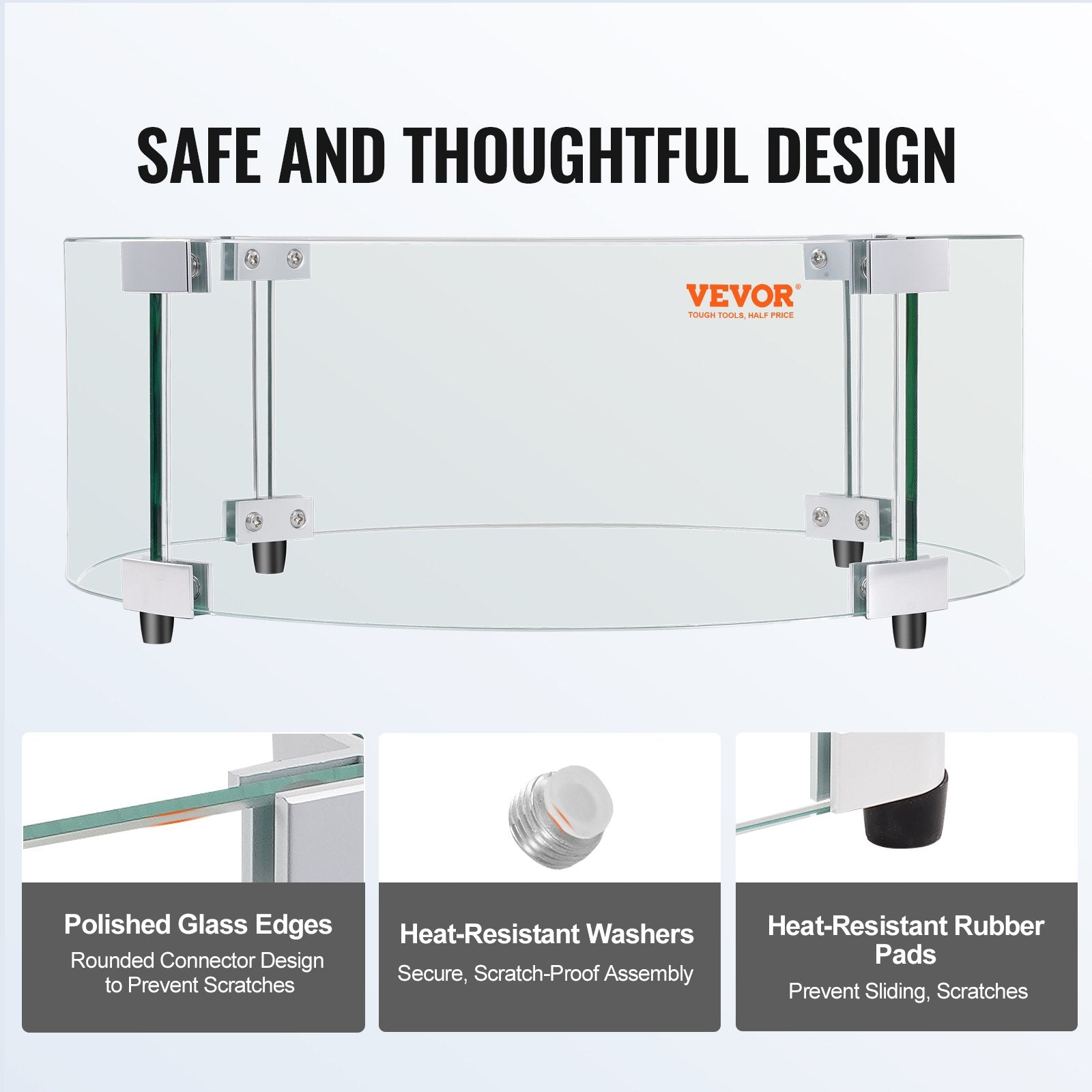 Vindskydd för eldstad, 740 x 214 mm runt flamskydd i glas, 6 mm tjockt eldbordstillbehör, flamskydd i härdat glas för propan, gas, utomhus, uteplats, bakgård