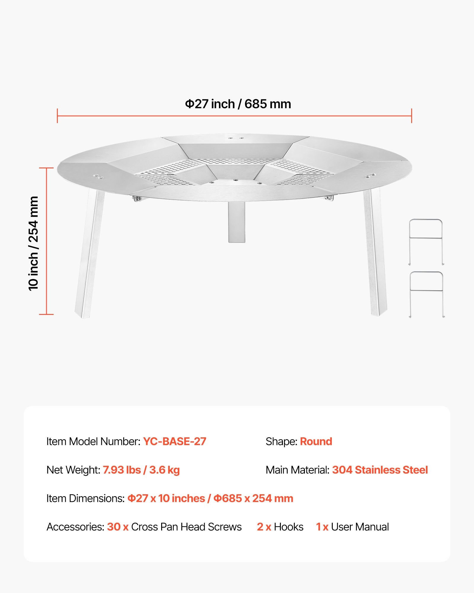 - Robust stöddesign: 3-punkts benstödssystemet säkerställer stabilitet för olika eldgropar, vilket förhindrar tippning och oavsiktliga fall. Perfekt för både fasta eldgropar i trädgården och bärbara campingkök, vilket ger säkrare användning.