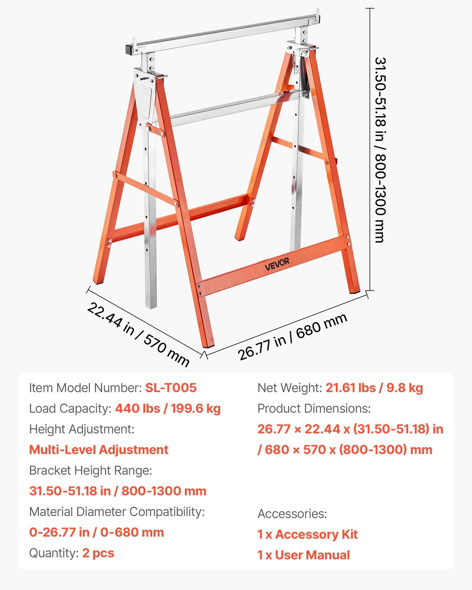 • Justerbar höjd: Denna bärbara sågbock möjliggör höjdjusteringar för att passa olika användare. Oavsett om du står eller sitter kan du matcha verktygshöjden och bibehålla komforten under längre arbetspass.