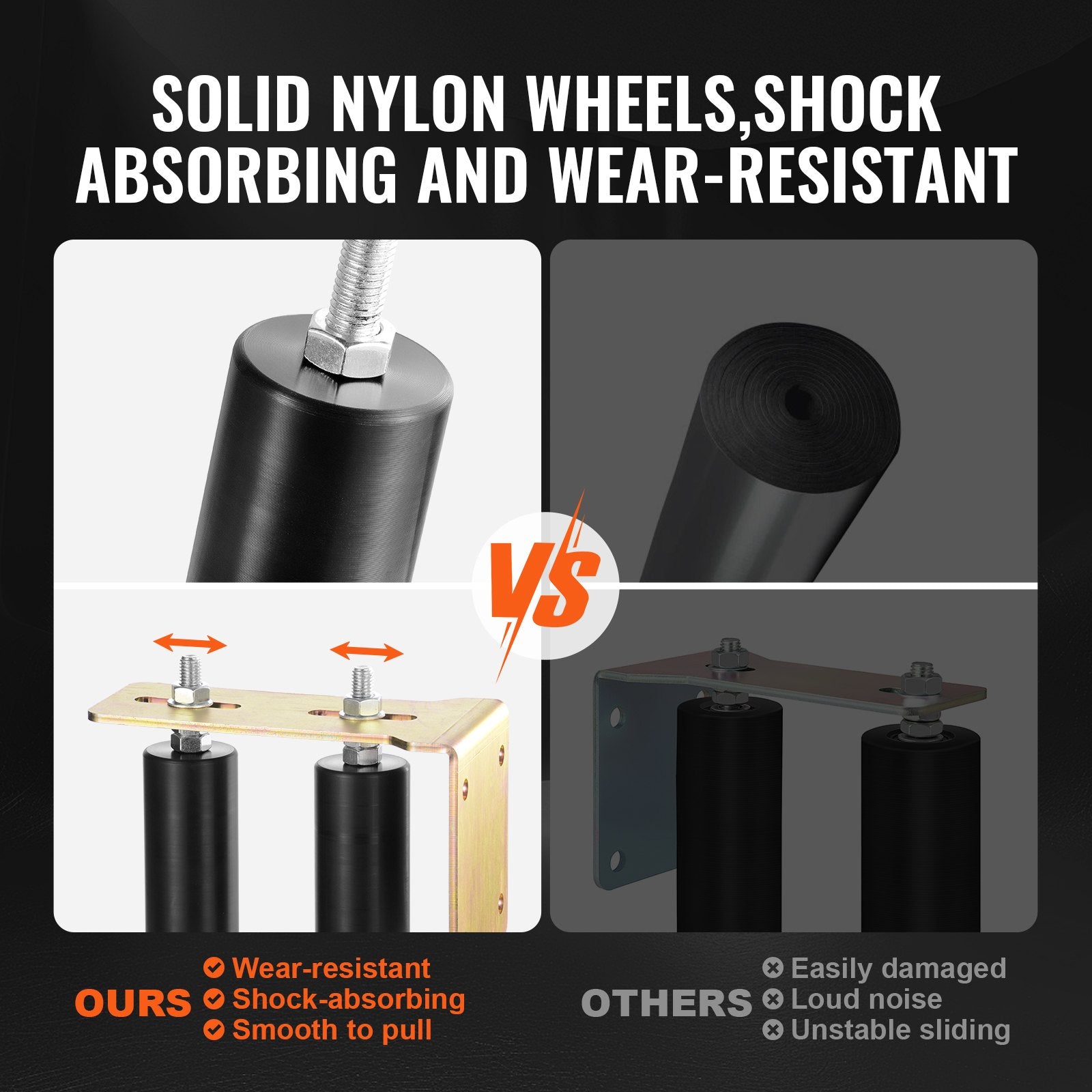 - Wear-Resistant Nylon Wheels: The high-density solid nylon wheels reduce track wear and significantly extend the lifespan of your sliding door, lowering maintenance frequency and costs.