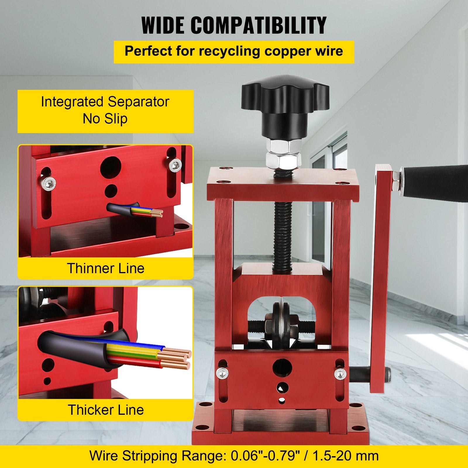 - En ekonomisk återvinningsmaskin: Den manuella avisoleringstangen är ett måste i ditt garage för att återvinna koppartrådar hemma. Den är enkel att montera på din arbetsbänk. Den kan flytta plast- och gummiisoleringen utan att skada innerledaren.