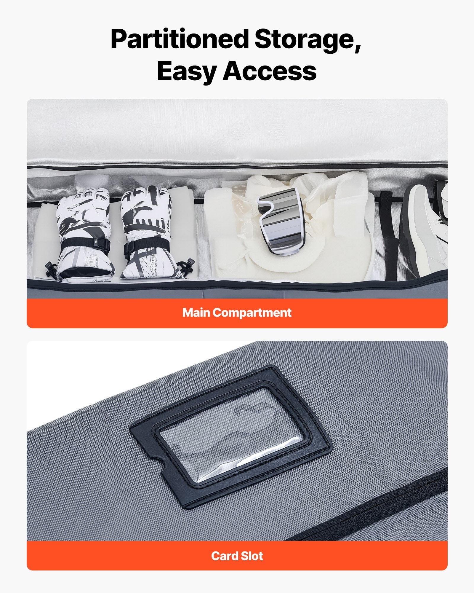 - Vattentätt skydd: Vår snowboardväska för flygning är tillverkad med vattentäta material både inuti och utvändigt och håller din utrustning torr även i snö eller våta förhållanden.