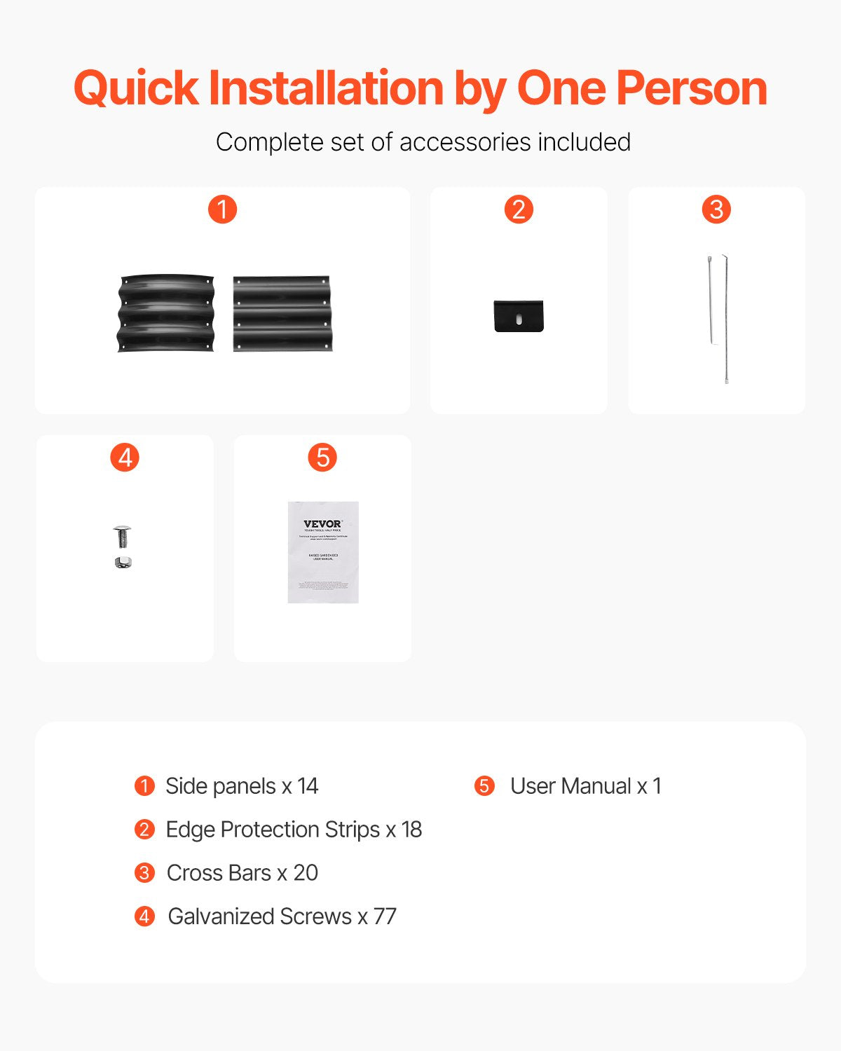 - Vad du får: Vår upphöjda trädgårdsbädd inkluderar 14 sidopaneler, 20 tvärstänger, 18 kantskyddslister, 77 galvaniserade skruvar och en bruksanvisning.