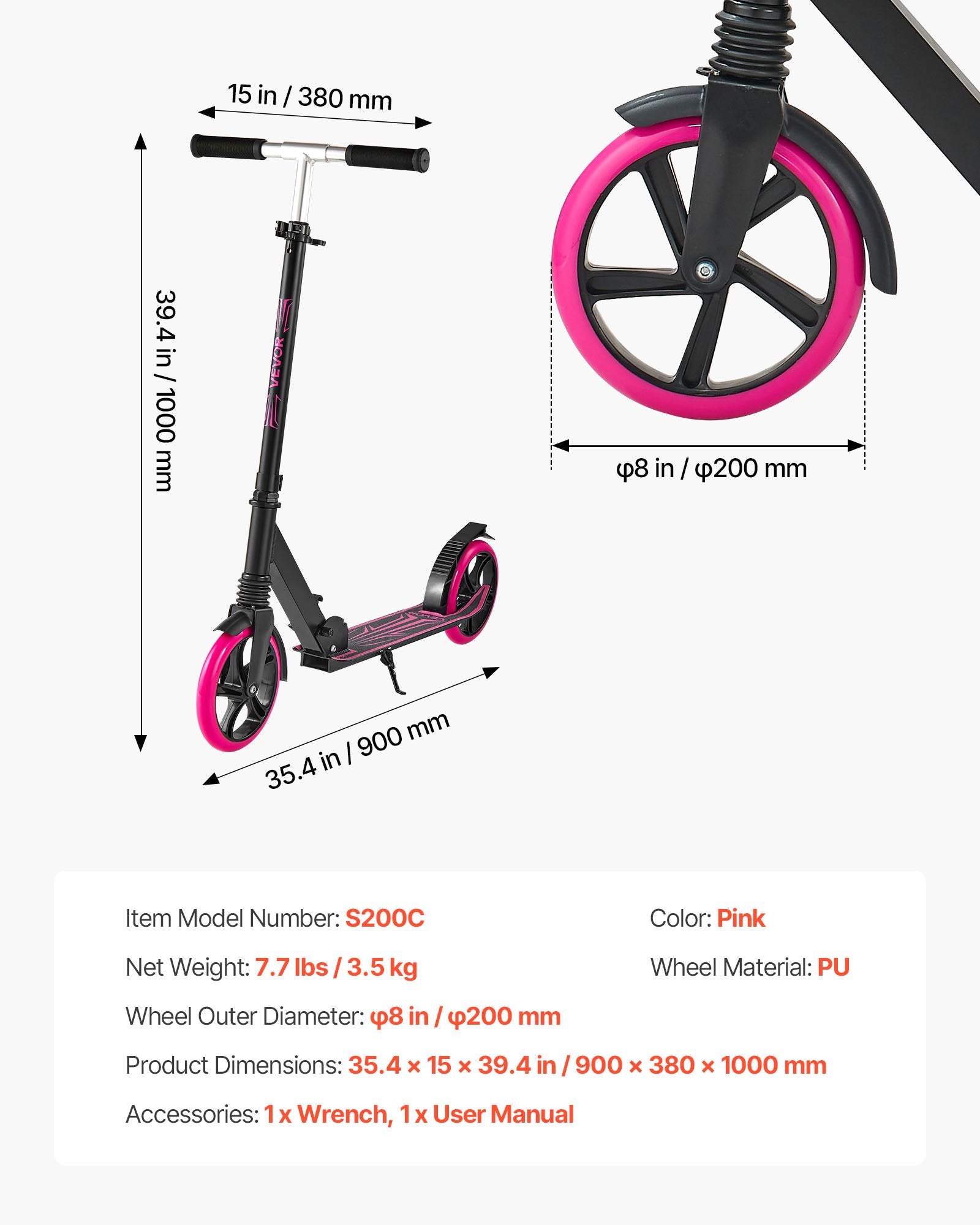 - Hjulets ytterdiameter: φ8 tum/φ200 mm
