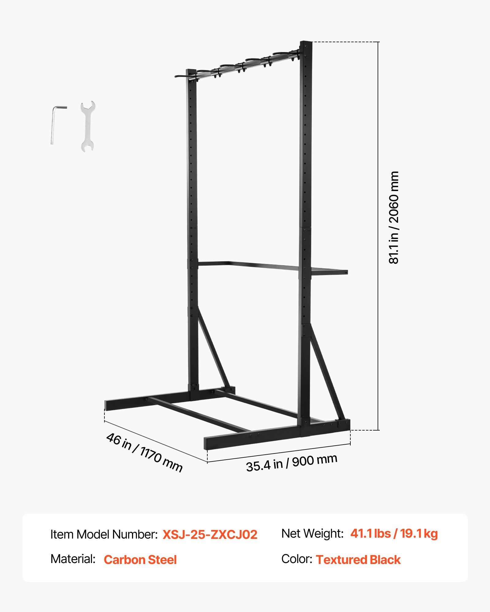 - Stöder upp till 136 kg: Vårt fristående cykelställ har 5 robusta krokar, var och en med en viktgräns på 27 kg. Du kan tryggt hänga din cykel utan att oroa dig för att den tippar eller faller.