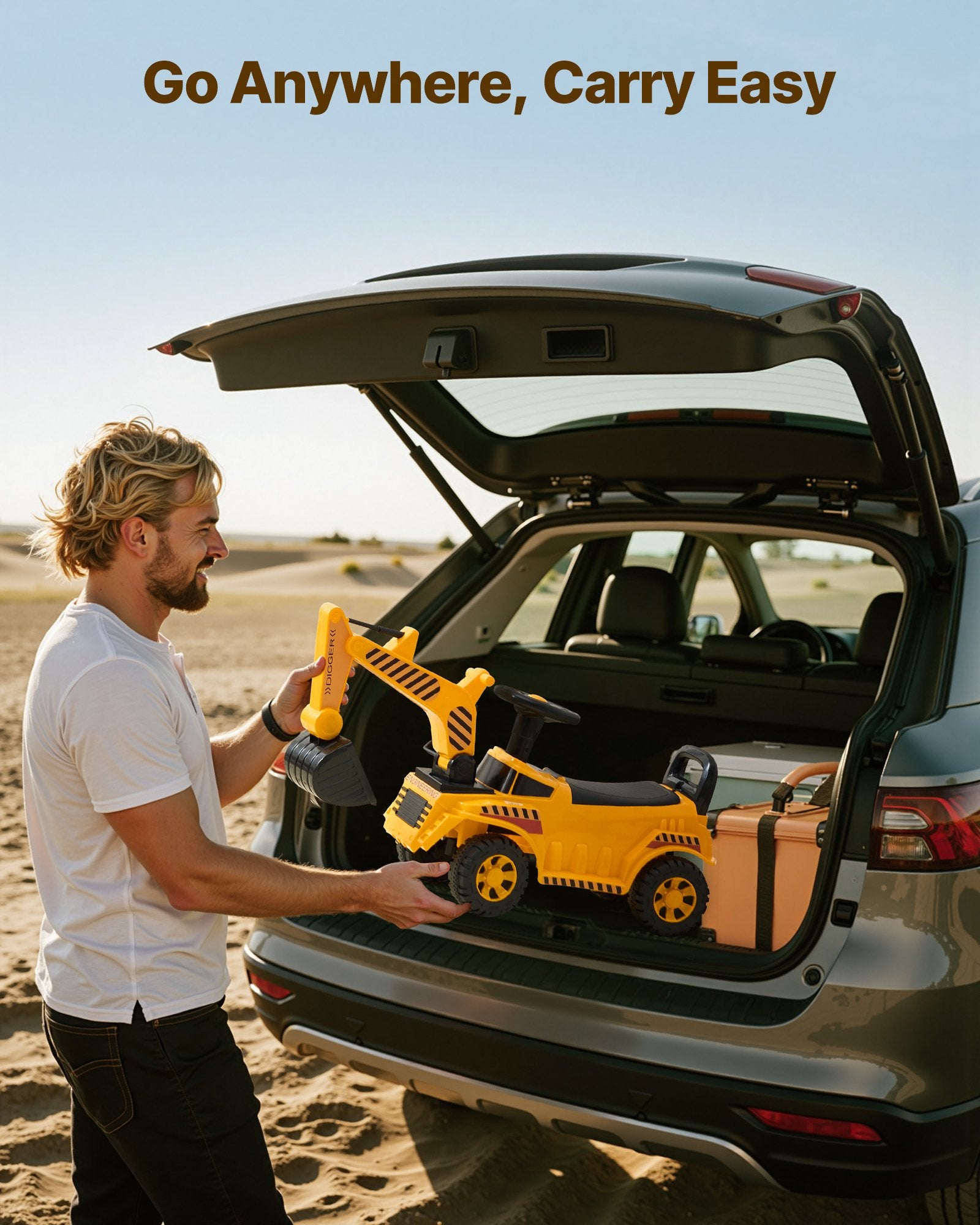 - Minikranförare: Med kontrollspaken kan barn höja och sänka grävararmen, styra med ratten och njuta av realistiska "tjug-tjug"-ljud. Komplett med en säkerhetshjälm är vår åkbil det perfekta sättet att utveckla hand-öga-koordination genom lek.