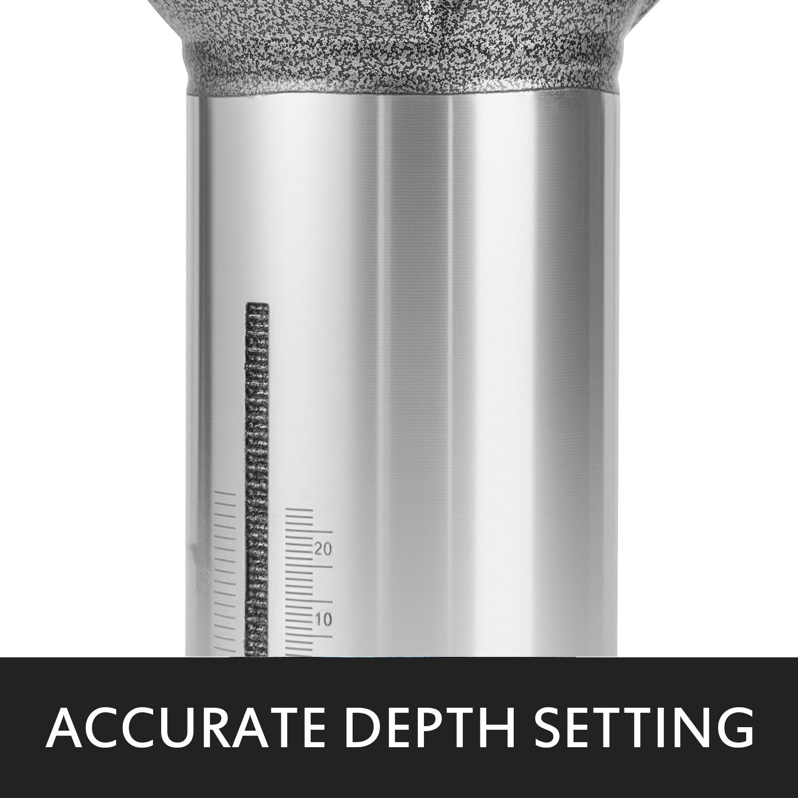 - 【NOGGRAN OCH PROCESS】- Justerbar kuggstångsdjupkontroll för mer precisionssågning. Graderad i både tydliga tum- och mm-djupskalor som är lätta att avläsa. Snabbkopplingssystem med kamlås för enkel djupjustering och borttagning/installation av basen.