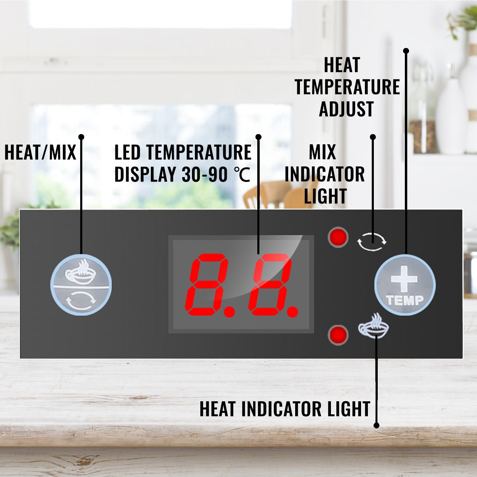 - 【LÄTT ATT ANVÄNDA】- Temperaturintervallet från 30 till 90 ℃, styrt av makrodatorsystemet, är mer exakt och vetenskapligt. LED-lampan med touch-knappen låter dig ställa in värme-/mixfunktioner och justera temperaturen bekvämt. Tryck sedan på handtaget för att släppa ut en varm, fyllig, blandad dryck från den droppfria kranen och njut.