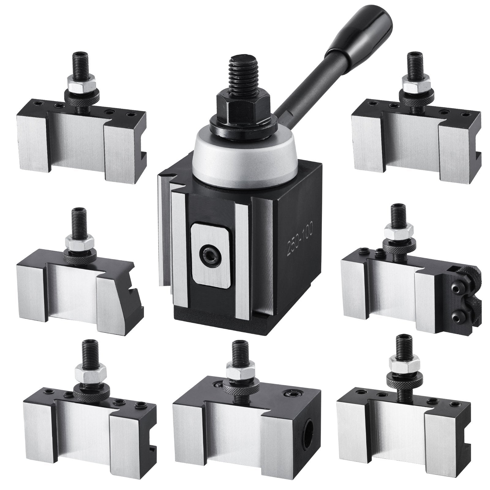 Snabbväxlingsverktygsstolpe, 8 delar, inkluderar svarvhållare, kilformad verktygsstolpe med tillbehör till svarvverktygshållare, passar för minisvarv och metallsvarv 152–305 mm (6"–12") sväng, hållbart stålmaterial