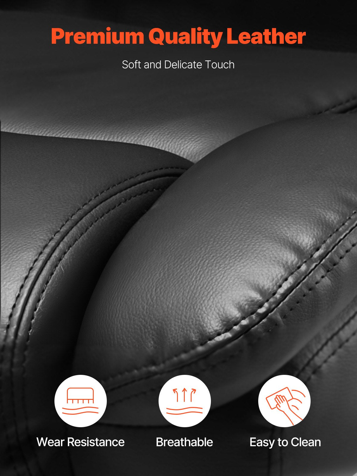 - Smidig och tyst rörlighet: Med 360° roterande, slitstarka och tysta hjul kan du glida smidigt och tyst över din arbetsyta i denna läderdatorstol. Den robusta metallbasen garanterar en stabil sittupplevelse som hjälper dig att hålla fokus oavsett vad din dag har att erbjuda.